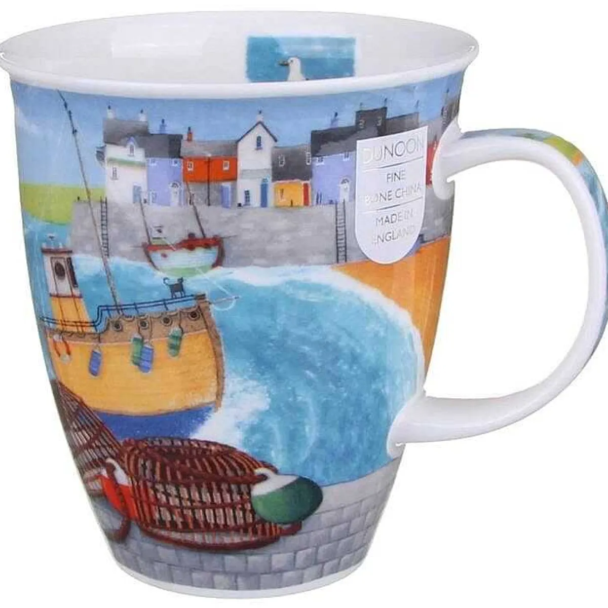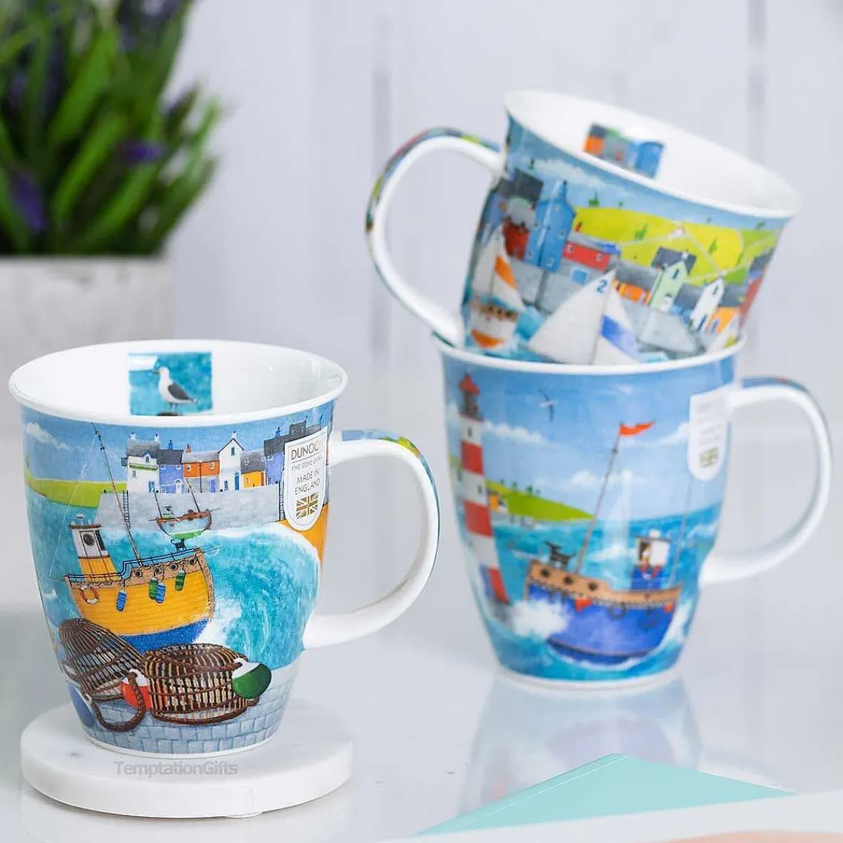 The Ahoy Range Of Mugs In The Nevis Shape Features Beautiful Nautical Illustrations. Available In Three Different Designs, This Particular Design Depicts Beautiful Boats And A Lobster Pot Against A Choppy English Shoreline.