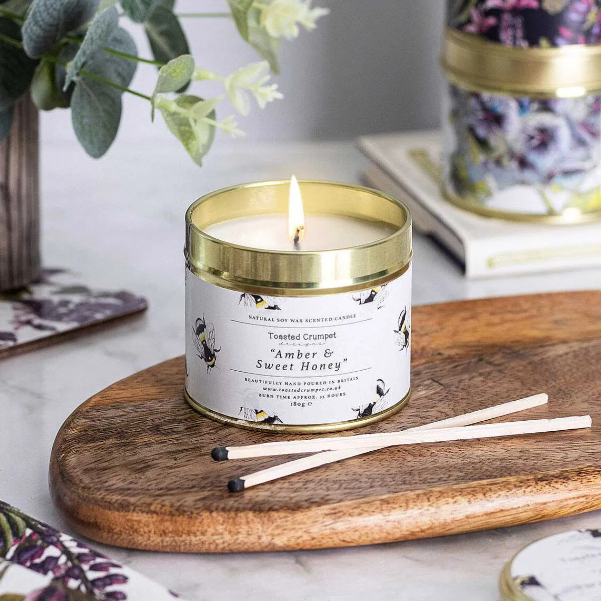 Bring This Delicate And Earthy Sweet Aroma Into Your Home With This Luxury, Scented Amber & Sweet Honey 180G Tin Candle From Toasted Crumpet!