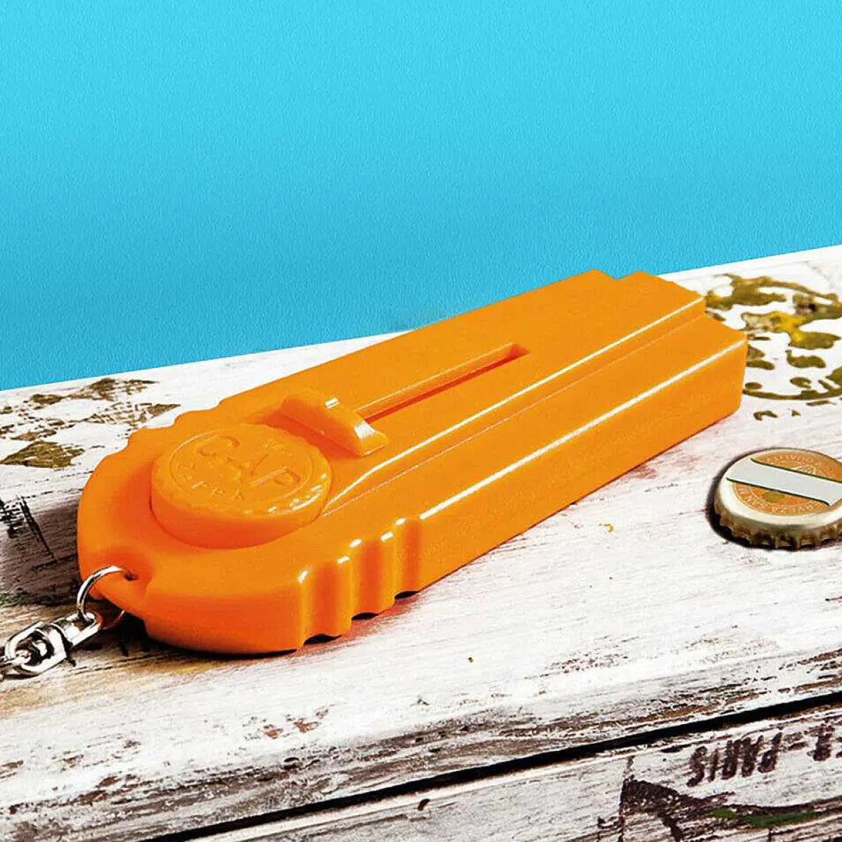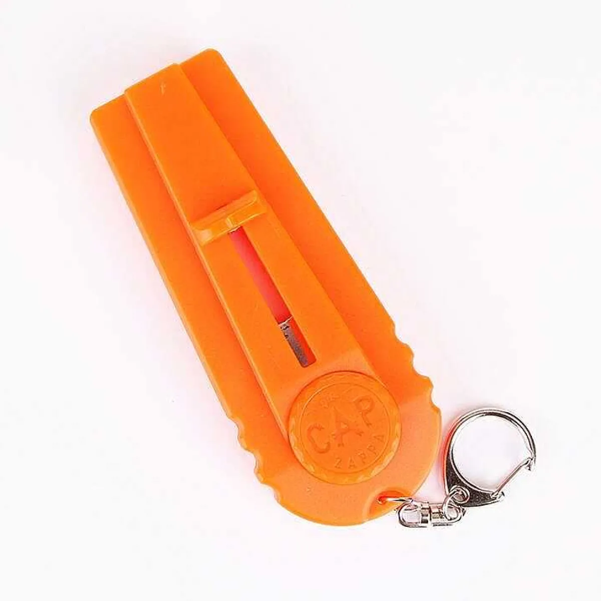 A Bottle Opener Combined With A Fun Gadget, This Cap Zappa Works Exactly Like A Normal Bottle Opener But Once The Cap Is Off It Remains In A Chamber Within. Pull Back On The Mechanism And Push The Big Button To Fire!! Launch The Unwanted Caps Into The Air To Distances Up To 5 Meters, The Zappa Comes In A Bright Orange Colour With An Attached Key Chain To Connect It To Your Keys Or Belt Strap.