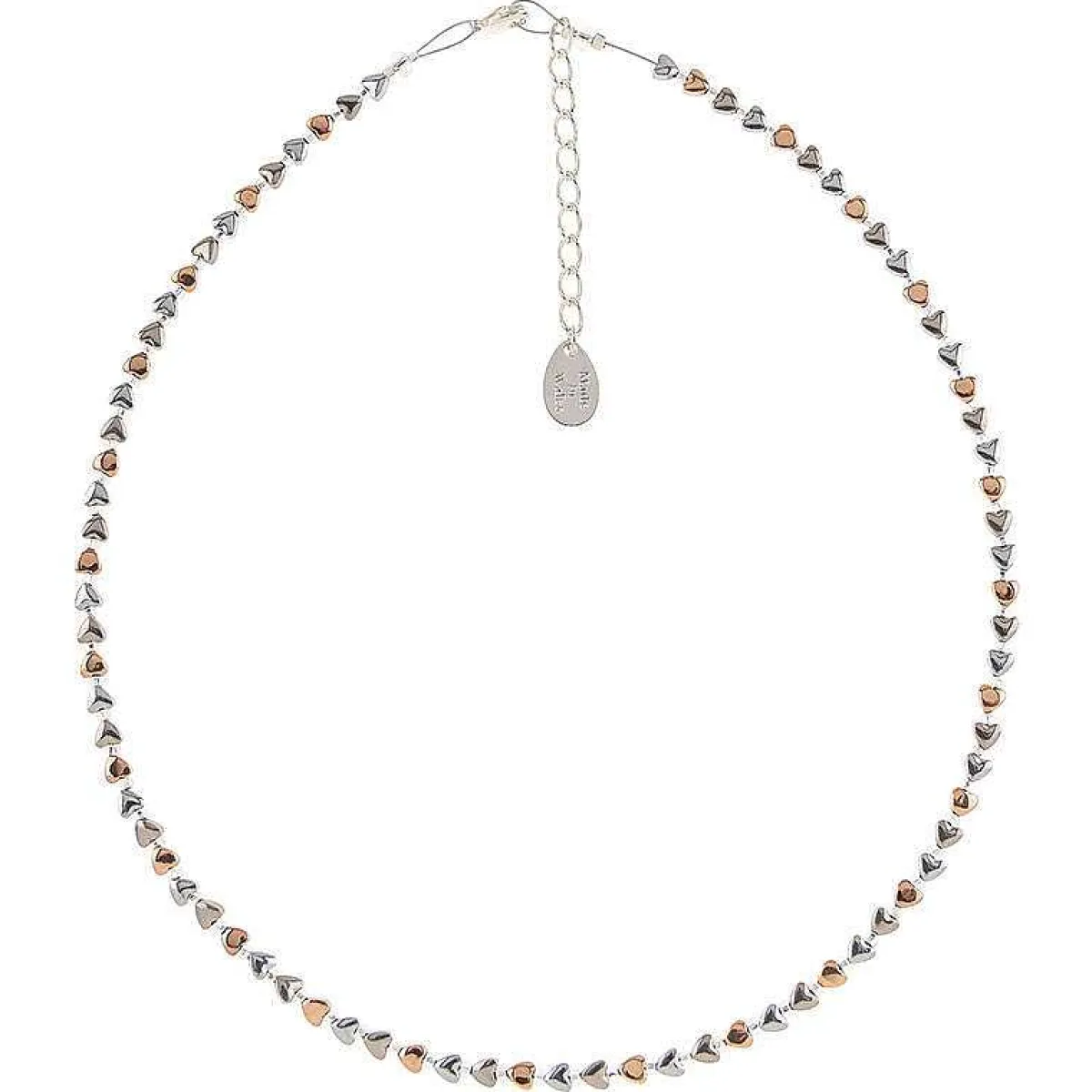 This Gorgeous Accessory From Carrie Elspeth Features Dainty Hearts In Silver And Rose Gold Which Alternate With Small Clear Spacer Beads, Allows The Delicate Hearts To Stand Out. The Necklace Is Elegant And Sophisticated, Suitable For Any Time Of Day, Morning, Or Night. The Little Hearts Sit On A Piece Of Thin Wire Which Will Add A Touch Of Sparkle And Class To Your Outfit For Any Occasion.
