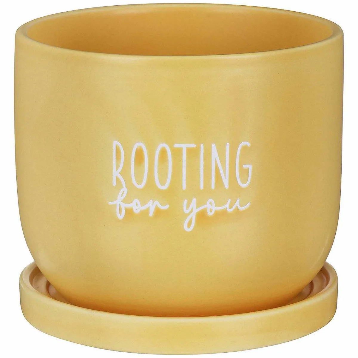 Made From Matte Yellow Ceramic, This Plant Pot Is Crafted With Care And Features Simple White Text On The Front Which Reads ‘Rooting For You’. With A Drainage Hole At The Bottom Of The Pot And Built In Saucer, The Excess Water Can Drain Out To Prevent You Drowning Your Plant. Bursting With Humour, It Would Make A Gorgeous Addition To Any Home, Whether Simply As An Ornament Or With A Potted Plant!