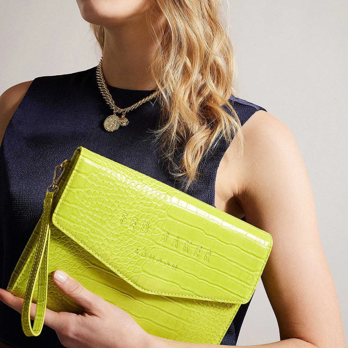 The Perfect Accessory For A Night Out Or Evening Meal, This Sophisticated Crocey Patent Lime Croc Pouch Bag From Ted Baker Will Add An Effortless Pop Of Colour To Any Outfit Thanks To Its Beautiful Colour Scheme And Intricate Design.