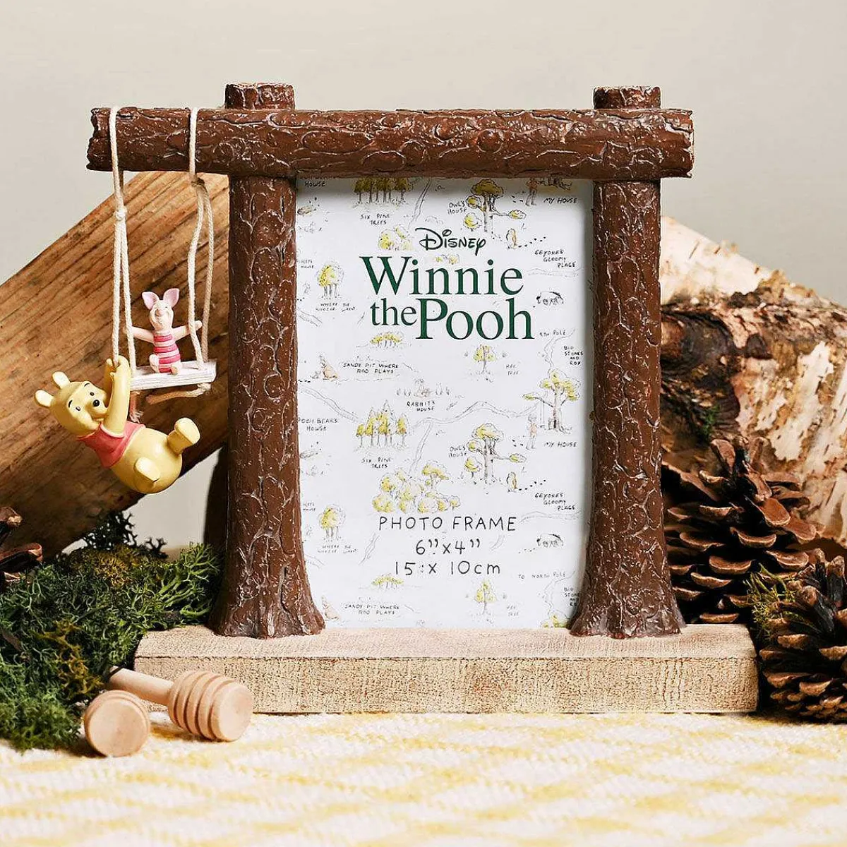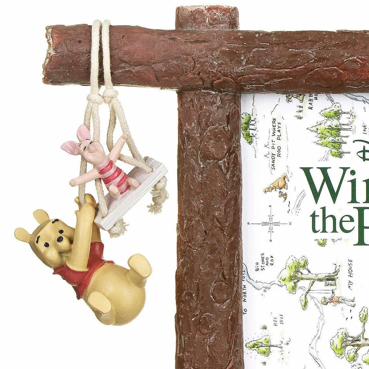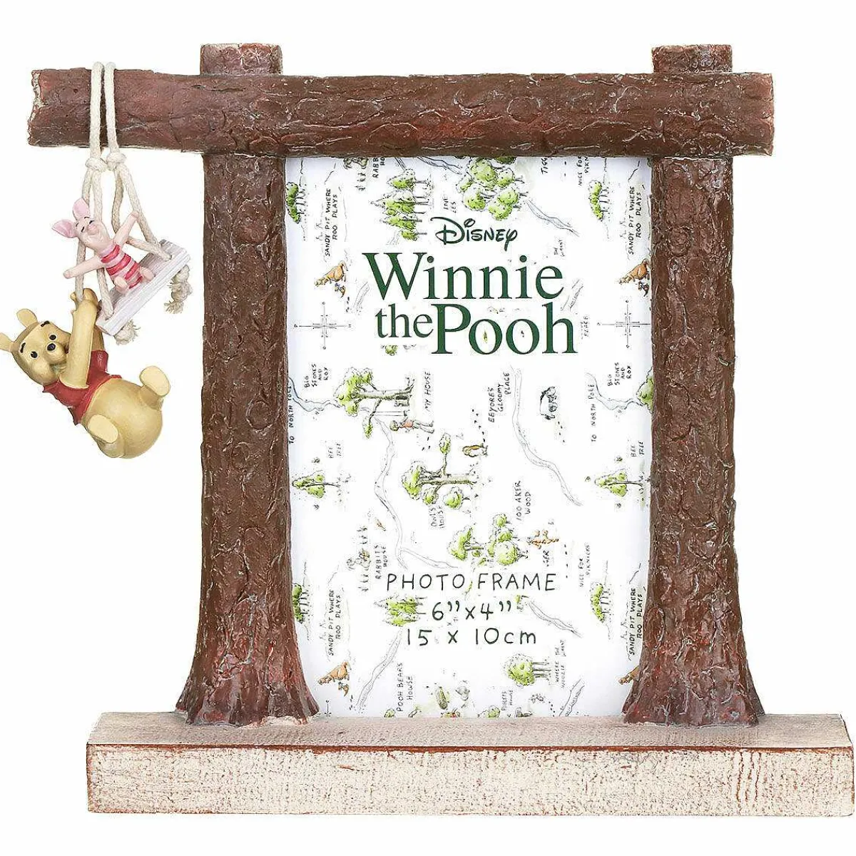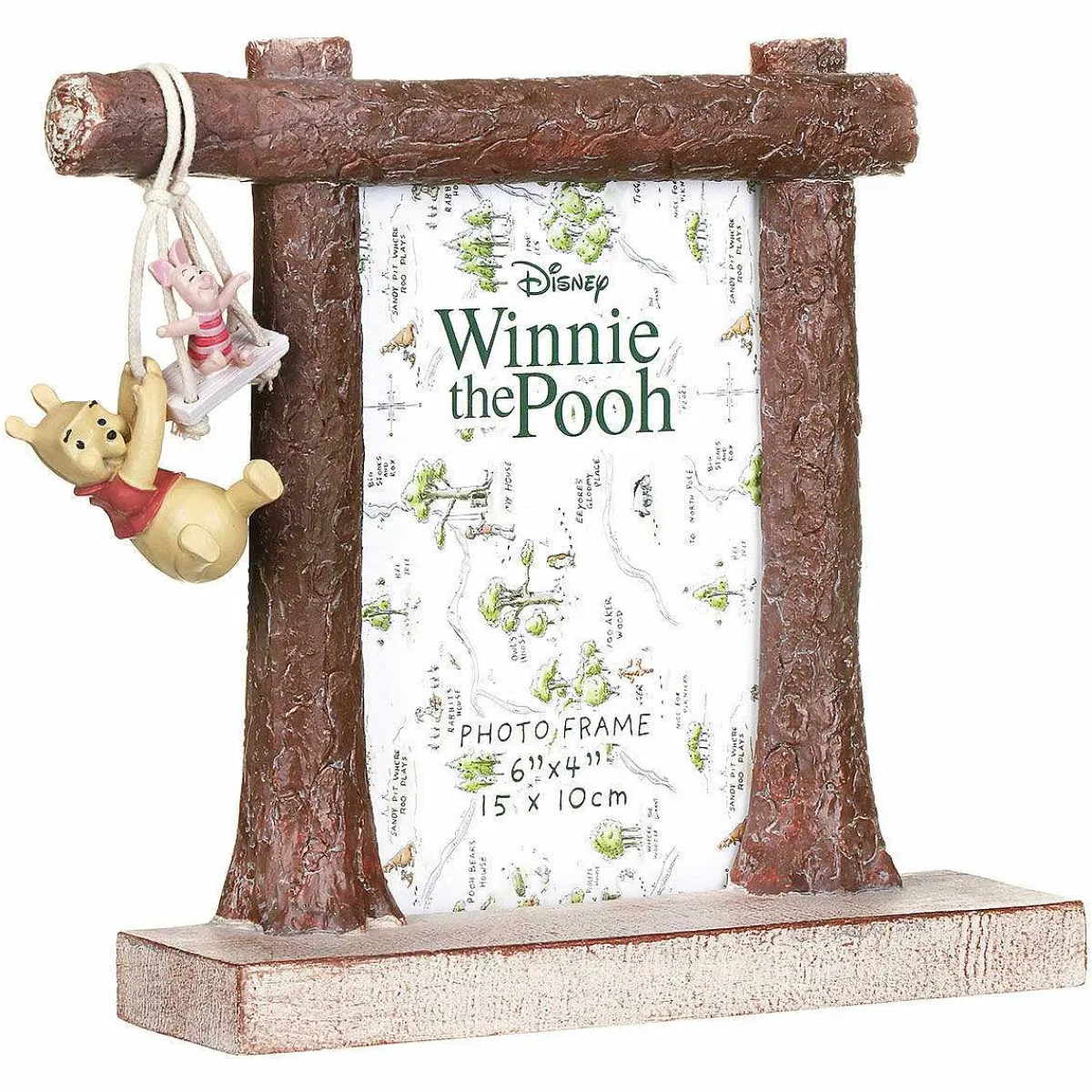 Based On The Works Of A.A.Milne And E.H.Shepard, This Charming Photo Frame Shows Winnie The Pooh And His Friend Piglet Playing Together On A Swing, Hanging From String So You Can Actually Make The Pair Swing. Made From Resin, This Photo Frame Is Hand-Painted And Has Been Textured To Look Like Tree Trunks With Space For A 4X6 Portrait Photograph Inside.