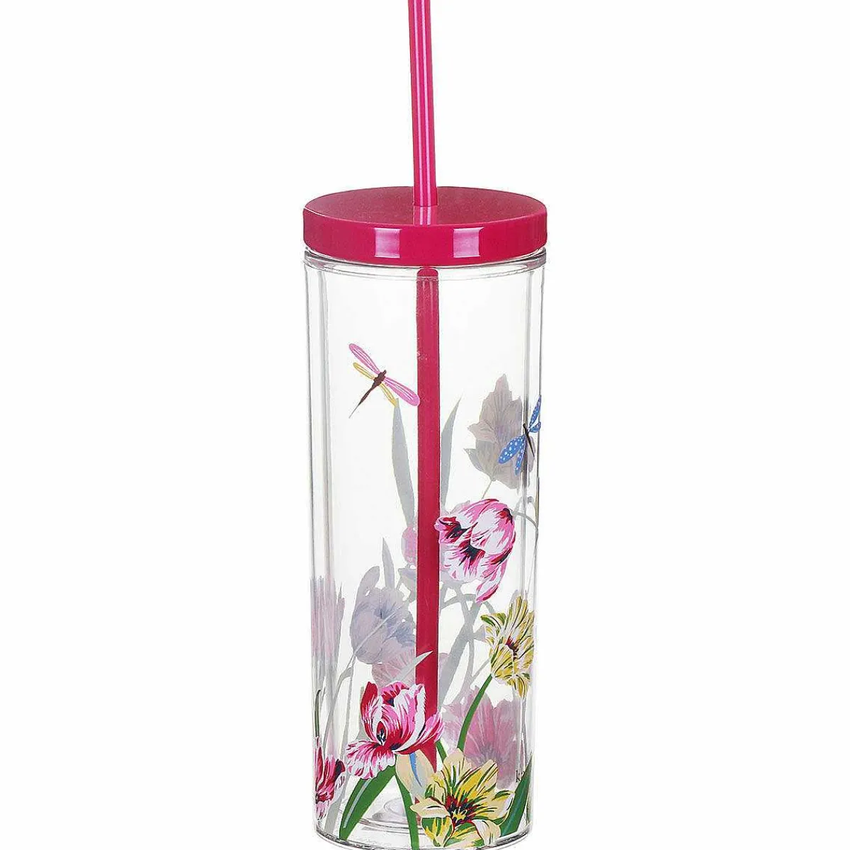 Kate Spade New York Dragonflies And Tulips Acrylic Tumbler With Straw