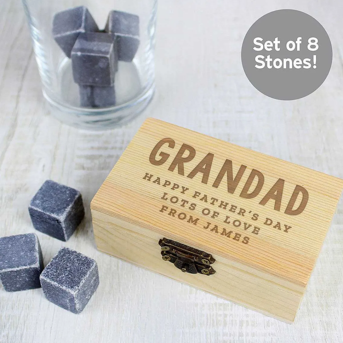 Neatly Presented In A Wooden Clasp Locked Box, This Personalised Cooling Stones Set Makes A Great Gift For Any Alcohol Enthusiast. From Single Malt Whiskey To Aged Rum, Or Even Gin, It’S Perfect For Someone Who Likes Their Drink On The Rocks But Doesn’T Enjoy The Ice Watering Down Their Favourite Drink.
