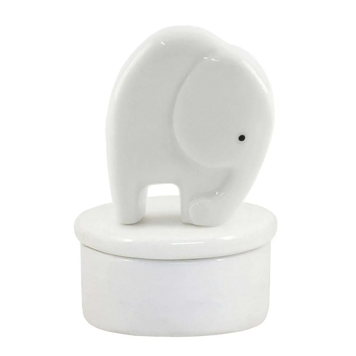 Made From Cream Porcelain With A Smooth Finish And Black Dots For Eyes, This Adorable Elephant Sits Upon A Small Lid To A Miniature Trinket Pot.