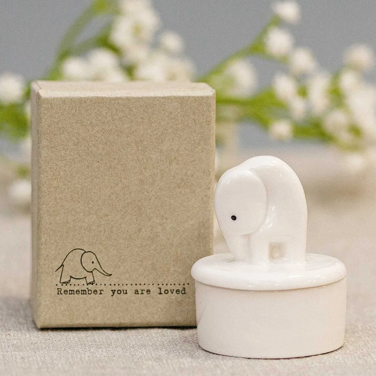 This Gorgeous Little Elephant Trinket Pot From East Of India Is The Perfect Sentimental Gift For A Loved One To Show Them How Much You Care. Simply Place A Message, Trinket, Jewellery Or Even Sweets Inside For A Wonderful Little Surprise. It Is A Beautifully Contemporary Piece To Add To Your Shelf Or Dressing Table.