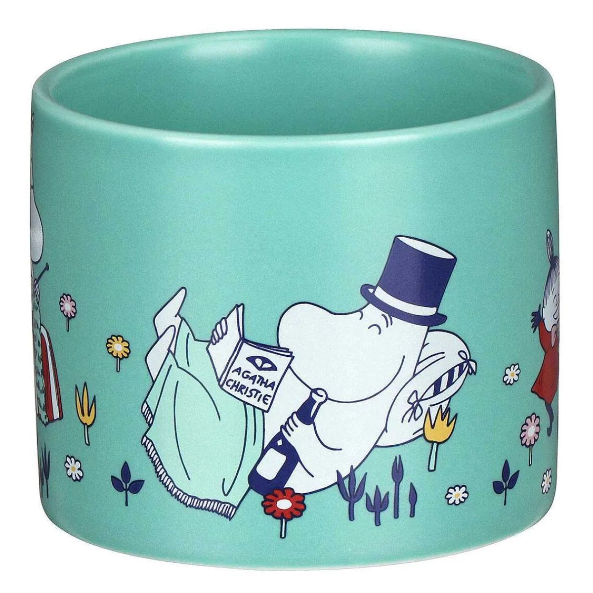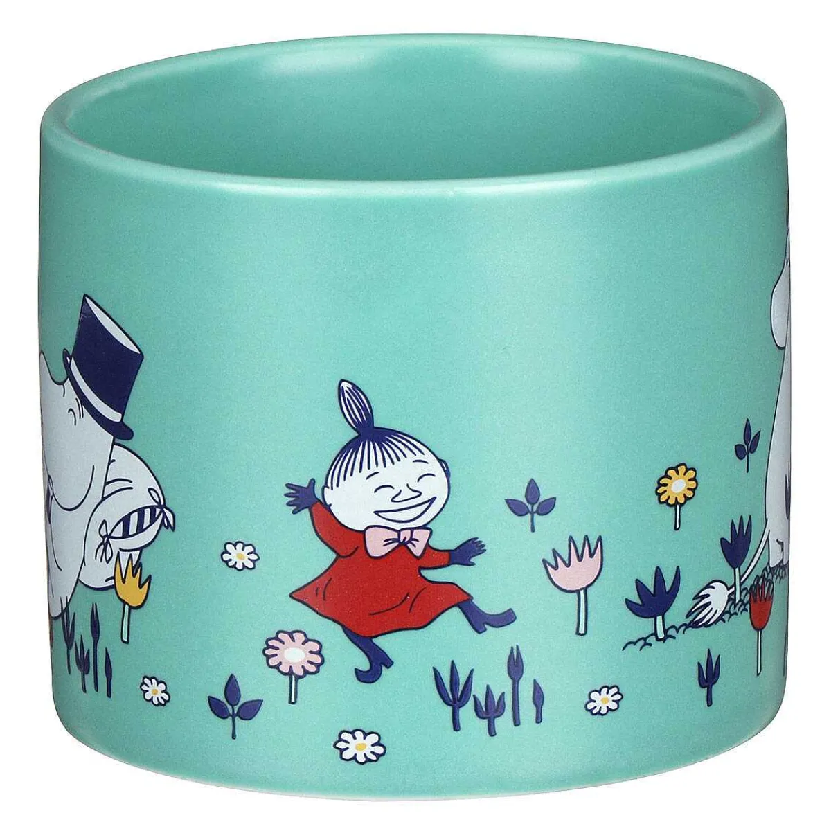 This Colourful Planter Features Several Of The Moomin Characters Around The Edge, With Moomintroll And Snorkmaiden Embracing In A Hug, Little My Along With Moominmamma Knitting And Moominpapa Reading A Book. The Body Of The Little Plant Pot Is Mint-Green, Suitable Any Home Décor. The Design Encompasses The Whole Ceramic Pot With Meadow Flowers Interspersed Between The Characters, A Marvellous Way To Display Your Favourite Herb, Cactus, Or Any Other House Plant.