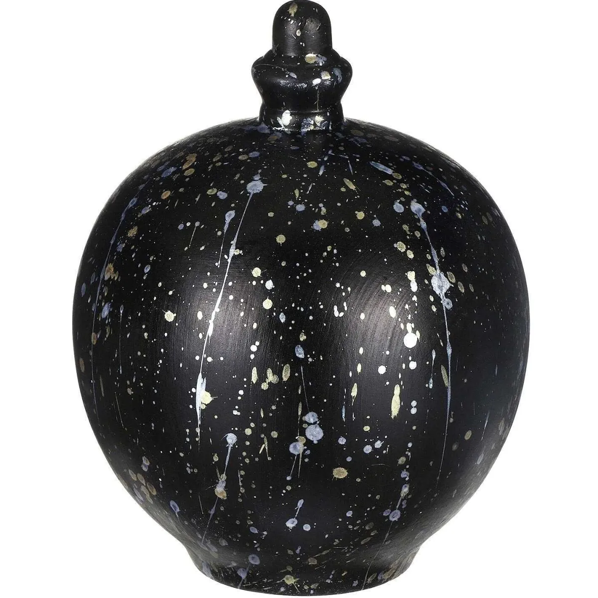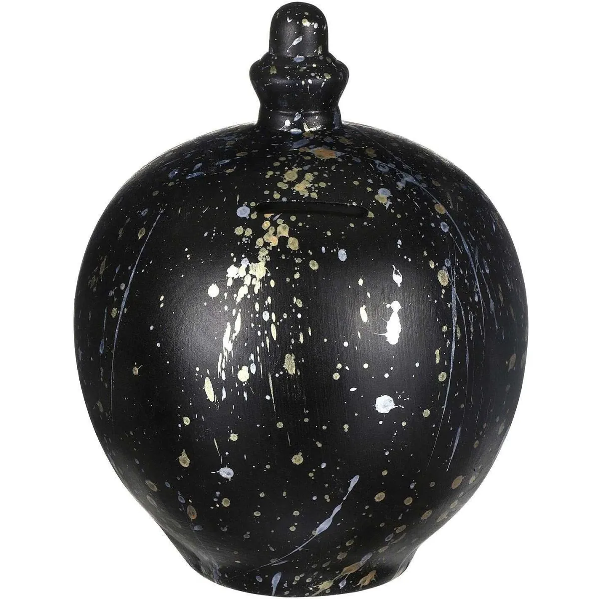 Save Up For The Things That Matter With This Multi Coloured Metallic Splatter Money Pot From Temptation, A Unique And British Designed Pot That Is Perfect As Both A Money Saving Device And A Decorative Piece! As If Inspired By An Expressionist Painting, This Black Ceramic Pot Is Decorated With Spontaneous Flicks Of A Paintbrush To Form Shimmering Metallic Gold And Silver Splatters.