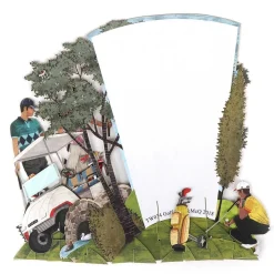 The Design Features A Group Of Men Playing Golf Surrounded By Golf Balls And Bags. The Background Is Made Up Of Luscious, Green Trees Full Of Birds Along A Golf Buggy And A Gorgeous Blue Sky.