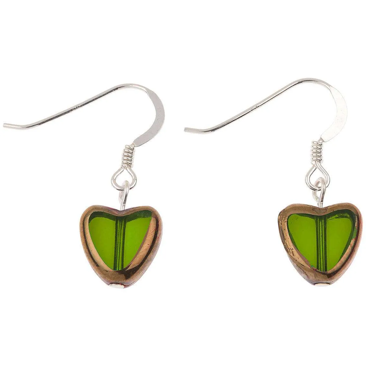 Add A Pop Of Colour And A Heartfelt Touch To Any Outfit With These Beautiful Earrings From Carrie Elspeth! Each Earring Features A Translucent Green Heart Shaped Bead With An Electroplated Gold Edge, Hanging From A Sterling Silver Hook. This Lovely Pair Of Earrings The Perfect Way To Compliment Your Day And Evening Wear. Combine With The Matching Bracelet And Necklace To Complete The Look. They Make A Gorgeous Gift For That Special Someone.
