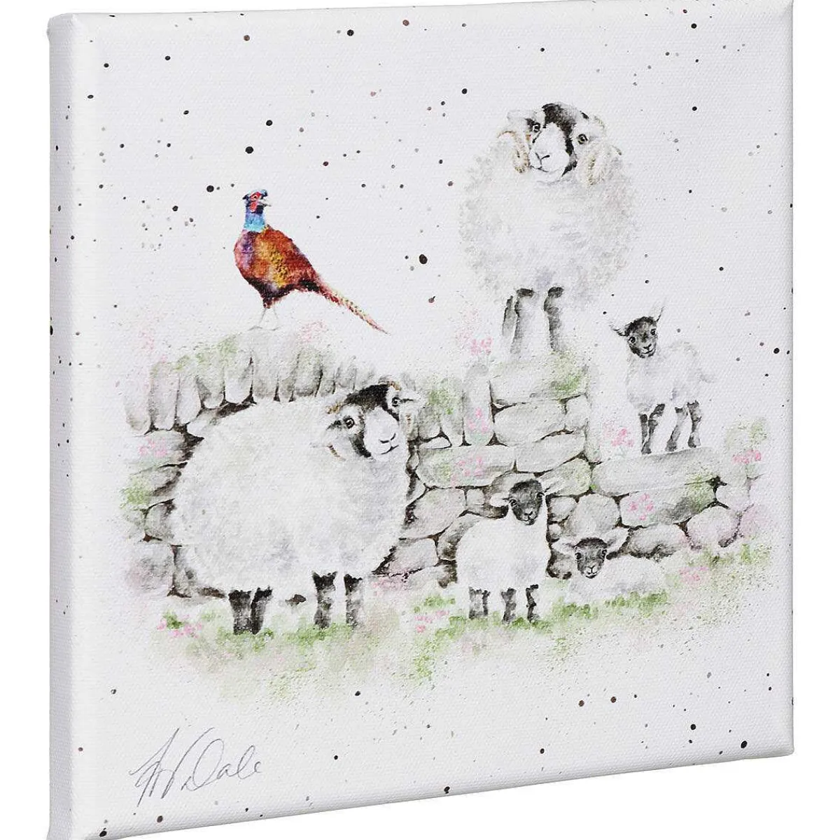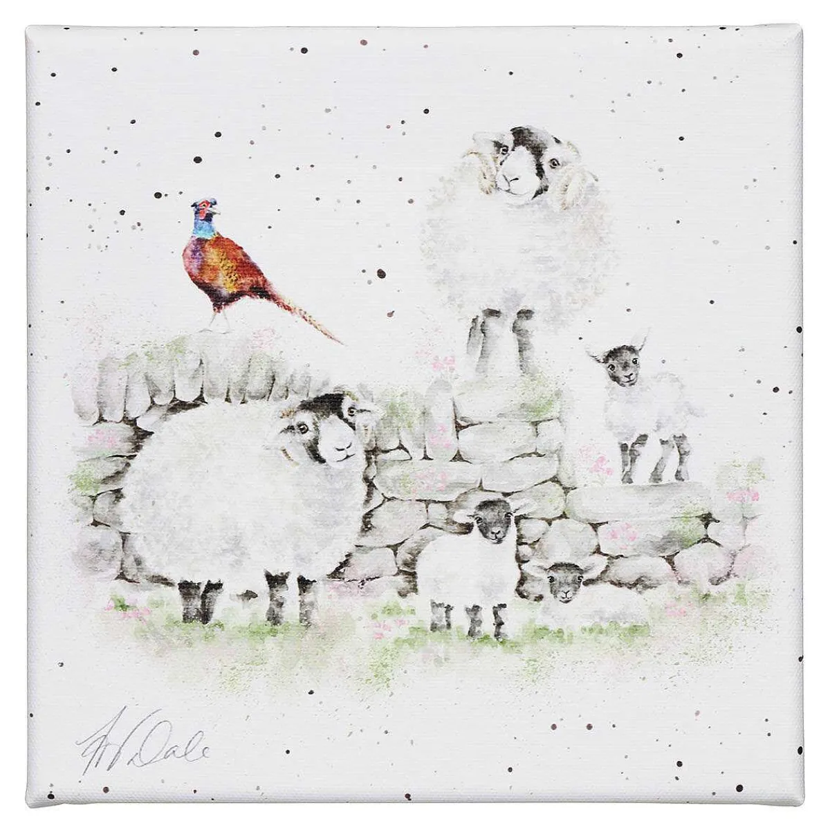 Set Against A Crisp White Canvas, This Painting Features An Endearing Scene Of Family Of Sheep Stood On And Around A Farmyard Brick Wall Surrounded By Green Grass And A Colourful Pheasant. The Intricacy And Detail Of This Piece Of Art Will Look Wonderful Hung On Any Wall.