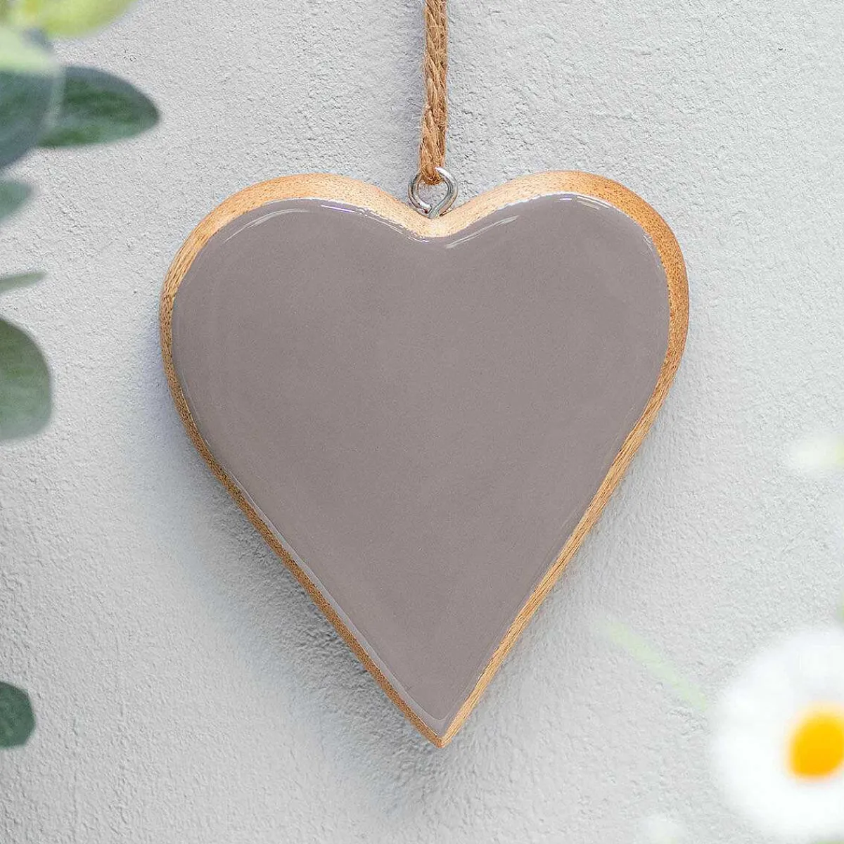 The Heart Is Suspended From A Loop Of Brown Twine So It Can Be Hung From A Wall, Door Or Window Displaying Its Beautiful Sign. The Wooden Heart Has A Shiny Enamel Front Which Is Grey In Colour.