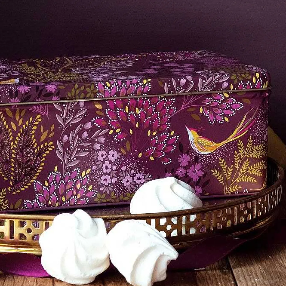 Sara Miller Haveli Garden Plum Songbird Long Deep Rectangular Tin