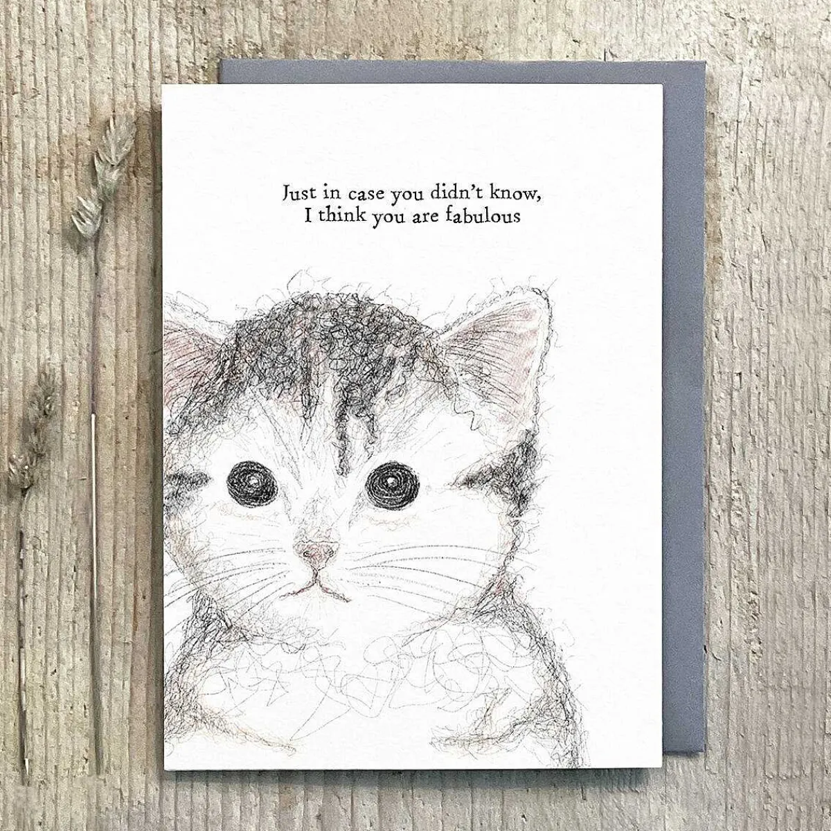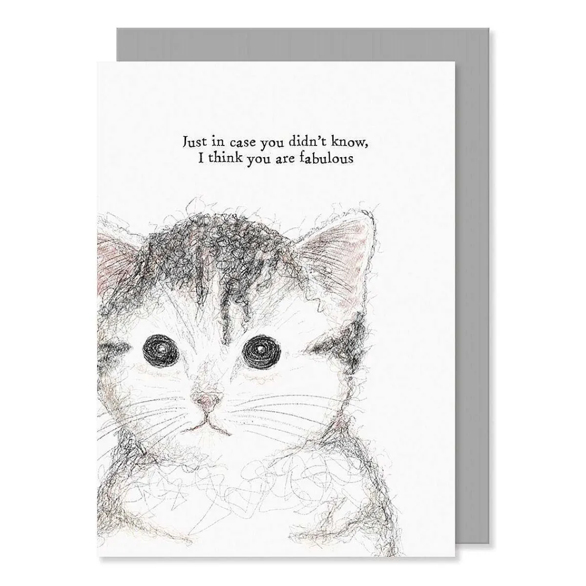 This Tasteful White Coloured Card Displays An Image Of An Endearing Cat With Large Black Eyes. The Card Has Text Above Which The Image Which Reads ‘Just In Case You Didn’T Know, I Think You Are Fabulous’ Written In The Traditional East Of India Style Font.