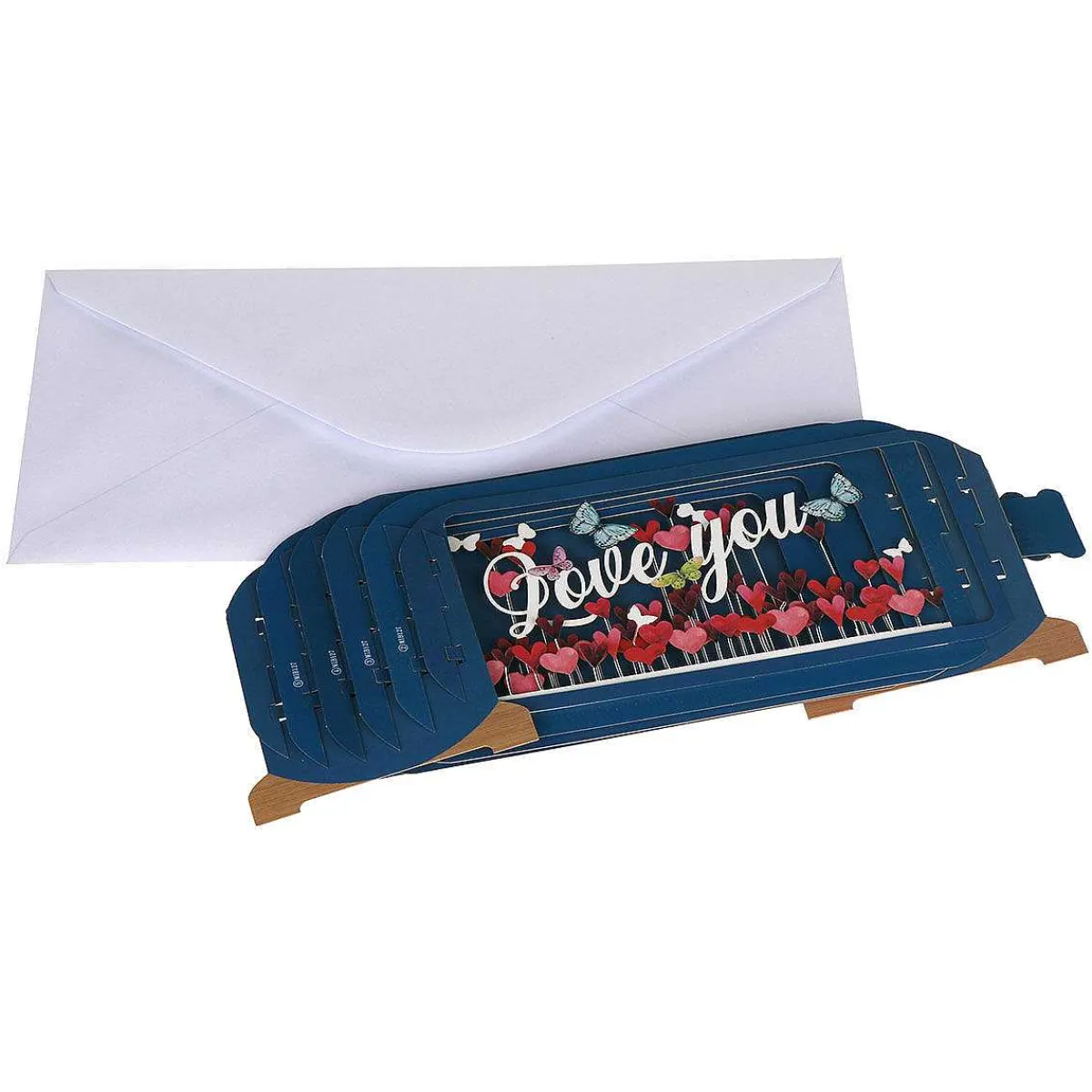 The Card Is Made Using Multiple Pieces Of Card, Slotted Together In A Three-Dimensional Fashion So That It Stands Freely! It Is Designed In The Shape Of A Bottle, Complete With A Cork In The End. Sitting Inside The Body Of The Bottle Is An Array Of Colourful Love Hearts And Butterflies, Primarily In Pinks, Reds And Purples. The Message Displayed Reads ‘Love You’ In A White Cursive Font, Simple Yet Elegant. This Card Is Perfect For Expression Your Love On Any Special Occasion!