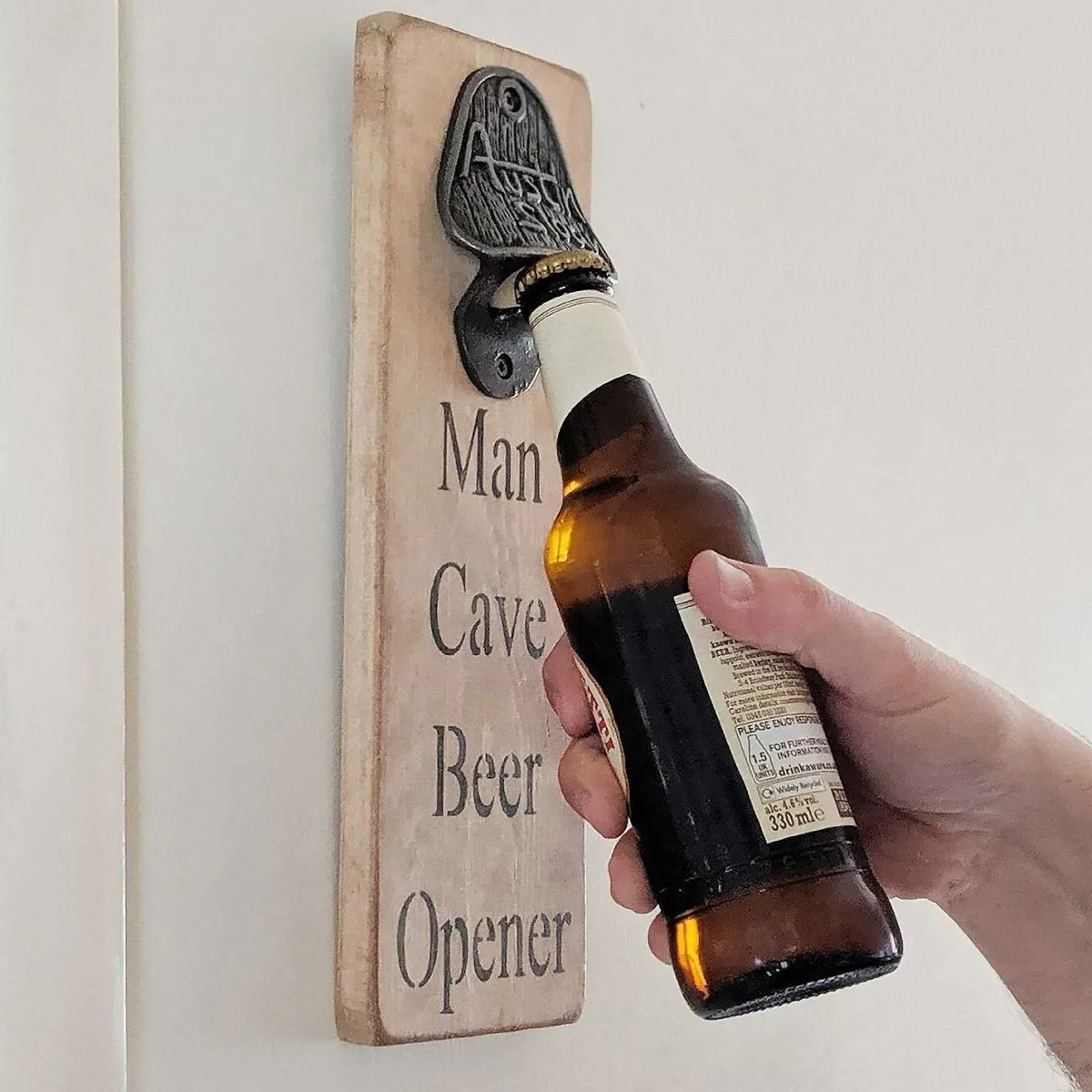 The Front Of The Sign Reads, ‘Man Cave Beer Opener’. It Features A Hook On The Reverse So You Can Fix It To Your Wall.
