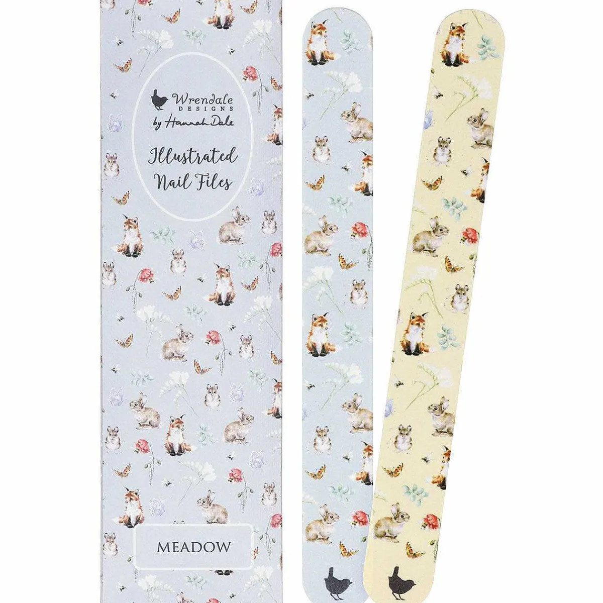 Treat Your Hands With This Gorgeous Meadow Nail File Duo From Wrendale Designs. This Set Includes Two Nail Files That Have Been Decorated On One Side With Wonderful Illustrations By Artist Hannah Dale. These Include Foxes, Rabbits, Mice And Butterflies Scattered In A Random Pattern, Interspersed With Lush Greenery. Each Nail File Has A Different Background Colour, One Blue And The Other Yellow.