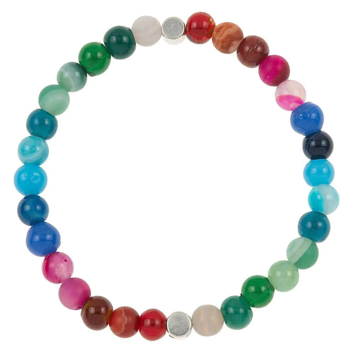 Add Some Fabulous Colour To Your Jewellery Collection With This Stylish, Beaded Medley Globes Bracelet From Carrie Elspeth. An Elegant And Chic Piece Which Is Perfect For Day And Night For Any Occasion. The Medley Globe Features A Stunning Mixture Of Glass And Agate Beads, Paired With Thoughtfully Spaced Silver-Plated Drums At The End Of Each Rainbow Of Colour From Greens To Blues To Reds.