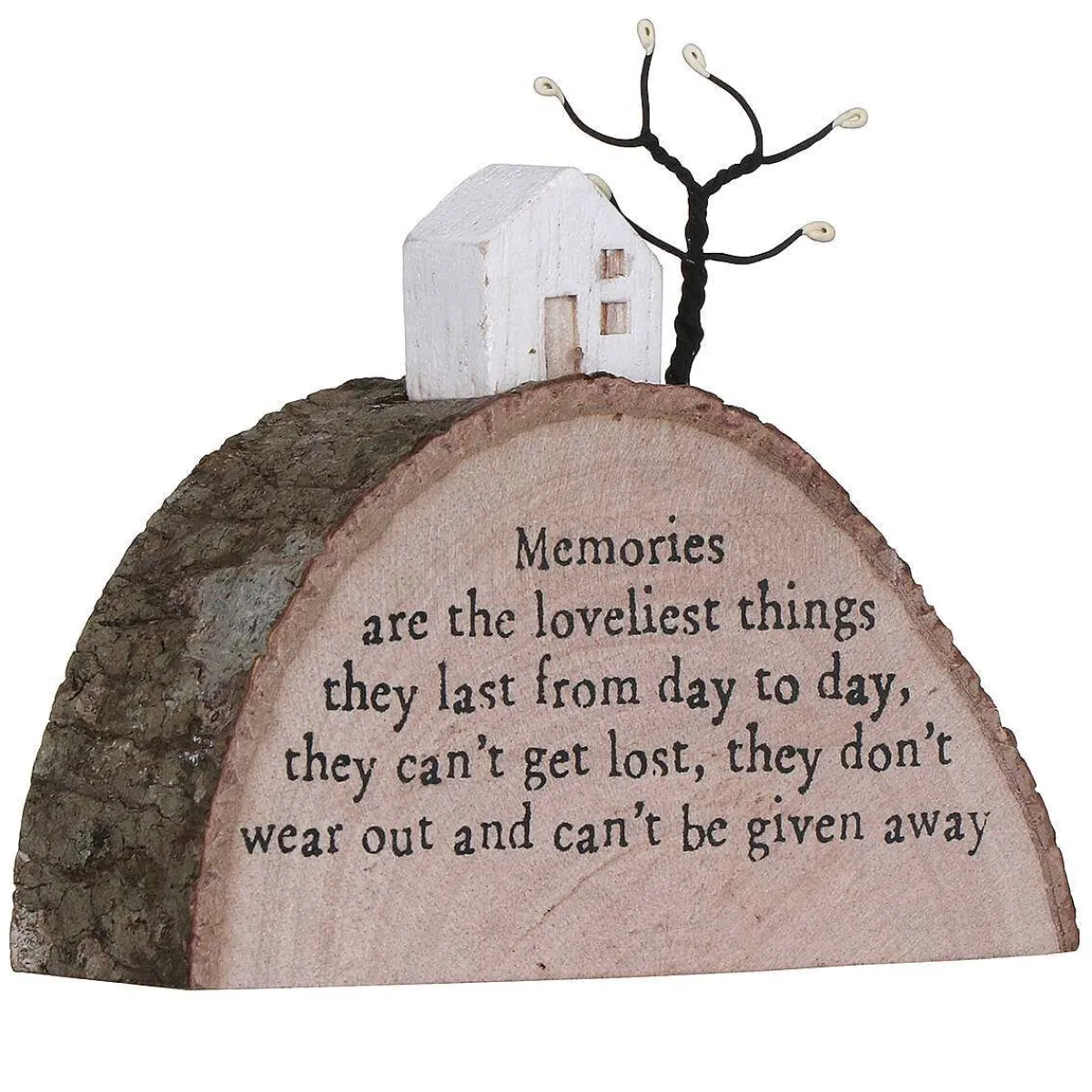 This Wonderful Decoration From East Of India Features A Small White House And A Small Wire Tree Sat On A Wooden Tree Block Which Reads ‘Memories Are The Loveliest Things They Last From Day To Day, They Can’T Get Lost, They Don’T Wear Out And Can’T Be Given Away.’