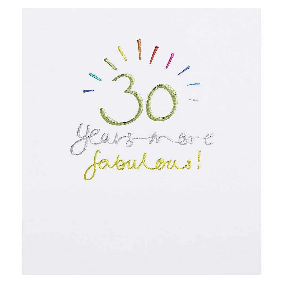 The Front Of The Card Features The Words: 30 Years Young! In Embossed Gold And Silver Script On A Textured Surface.