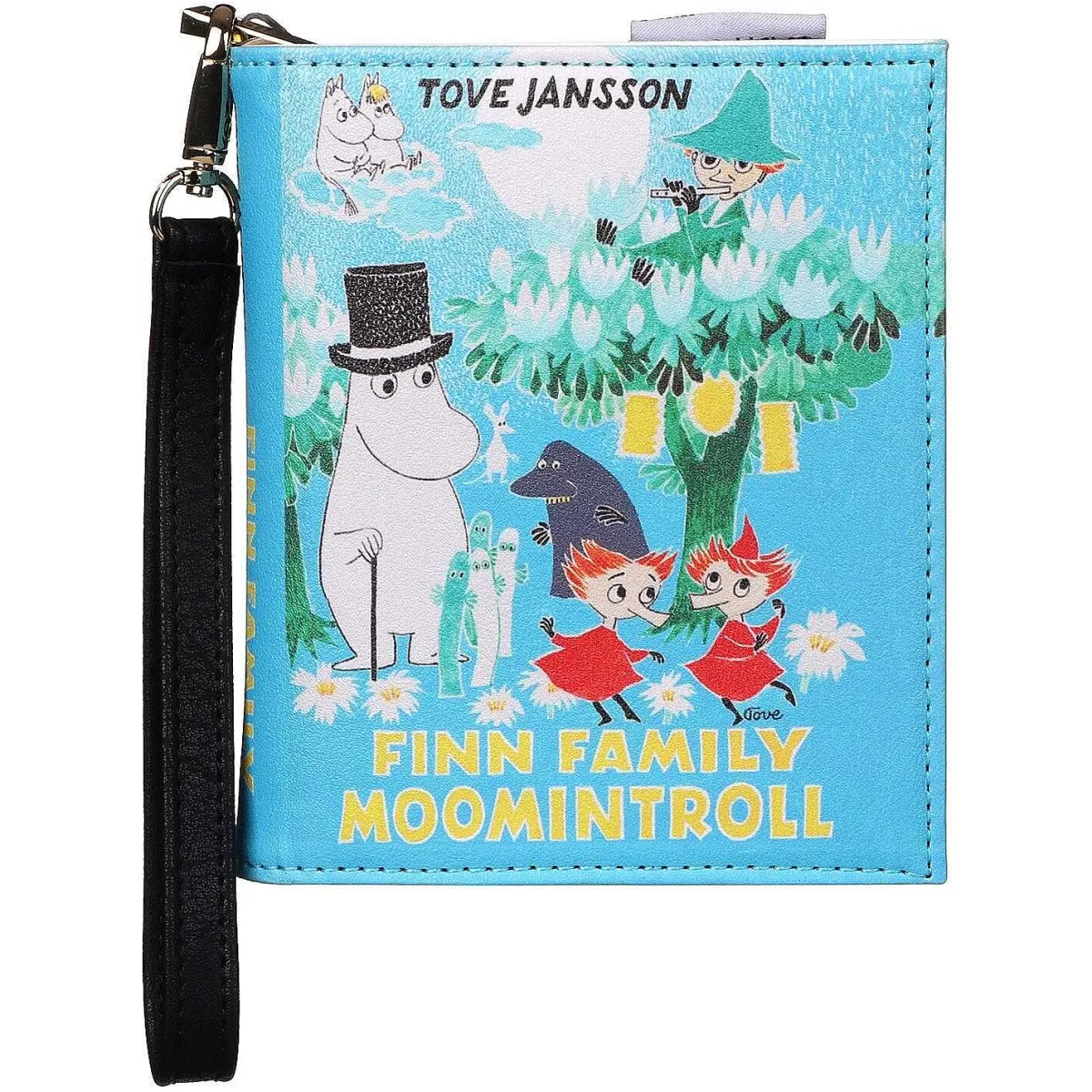 Bright Blue In Colour And Made From Pvc, The Bag Is Designed In The Shape Of The Novel, ‘Finn Family Moomintroll’ By Tove Jansson. The Cover Features An Illustration Based On ‘sort Of Books’ Artwork From Finn Family Moomintroll. It Includes Snufkin, Moominpapa, The Hattifatteners, Snorkmaiden, Moomintroll, The Groke, Snufkin And Thingumy And Bob!