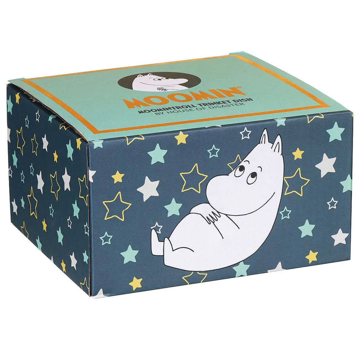 This Cute And Practical Porcelain Dish Is Perfect For Keeping Your Jewellery, Accessories, And Trinkets Safe Upon Your Dresser. The Cute Trinket Dish Features A 3D Moomintroll Stood On Top Of A Star Shaped Dish. The Dark Teal Dish Is Adorned With Illustrated Stars Complete With Gold Foil Highlights Which Makes This An Eye-Catching Dish For Your Nick-Nacks.