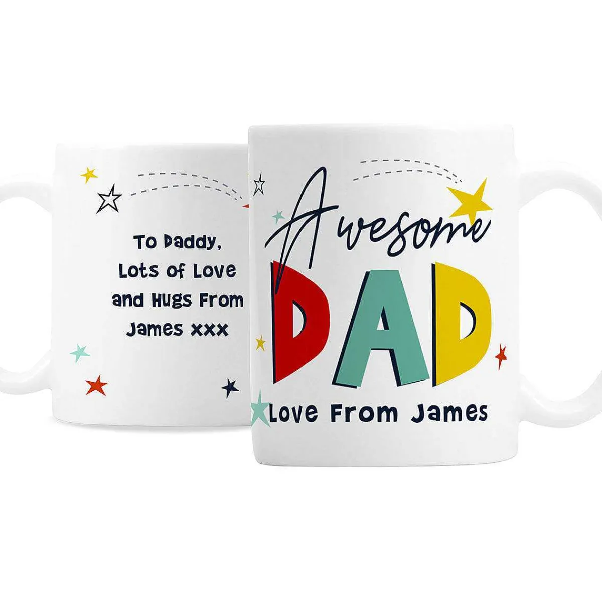 The Perfect Gift For Showing Your Dad Just How Much He Means To You. It Features Writing Which Reads ‘Awesome Dad’ In Big Colourful Text. The Name And Message Will Appear As Capitalised Text.