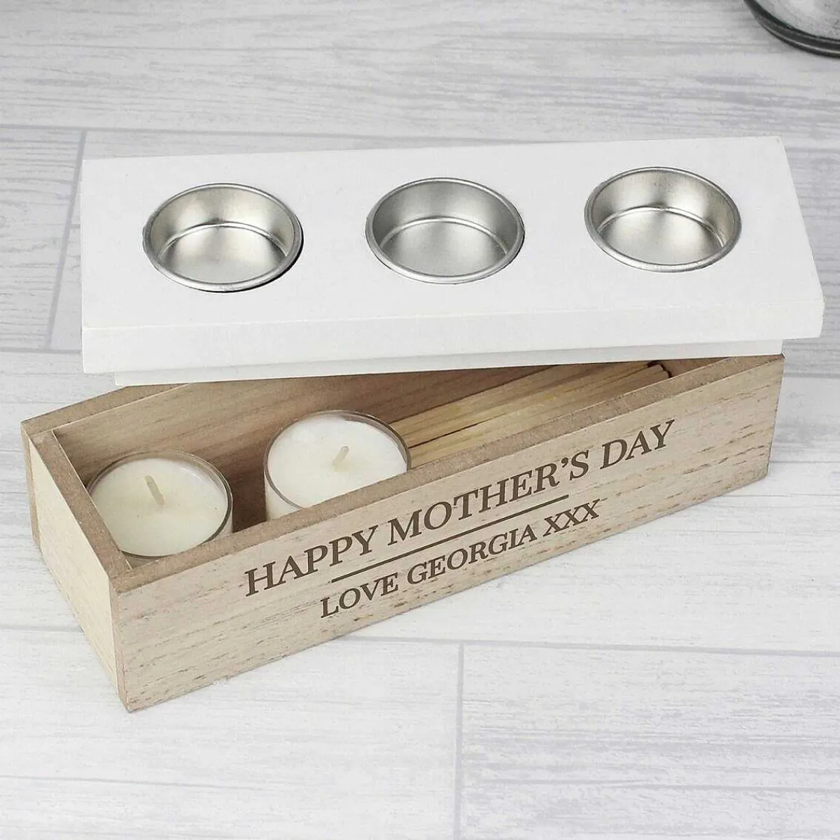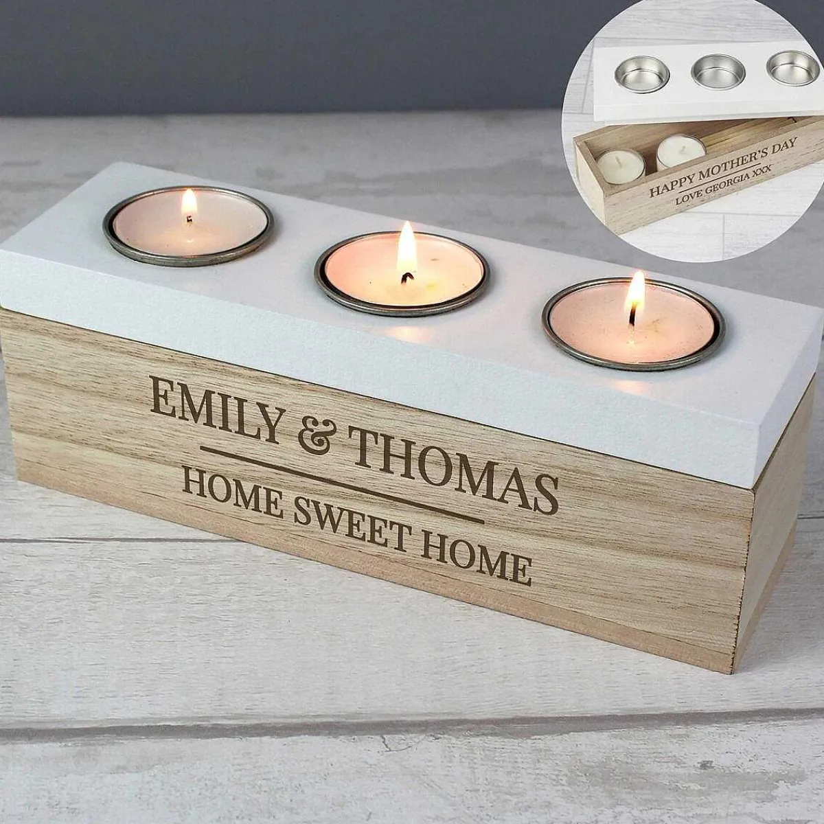 Get Your Home Organised With The Help Of Our Personalised Classic Tealight Box! This Wooden, Shabby Chic Box Can Store A Small Amount Of Tealights Or Trinkets. The Lid On The Box Can Hold 3 Tealights, Creating A Unique Feature For Any Shelf Or Mantelpiece. This Personalised Gift Is Ideal For Mother’s Day, Birthdays, Weddings, Anniversaries, A New Home, Christmas, And Valentine’s Day.
