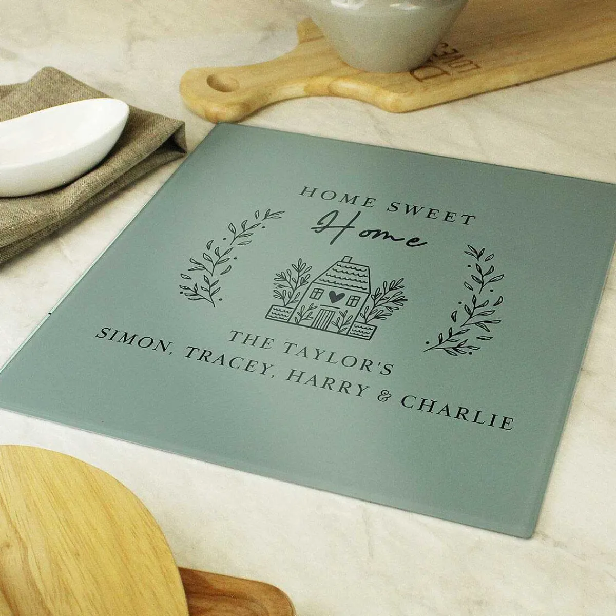 Personalised Home Glass Chopping Board Worktop Saver