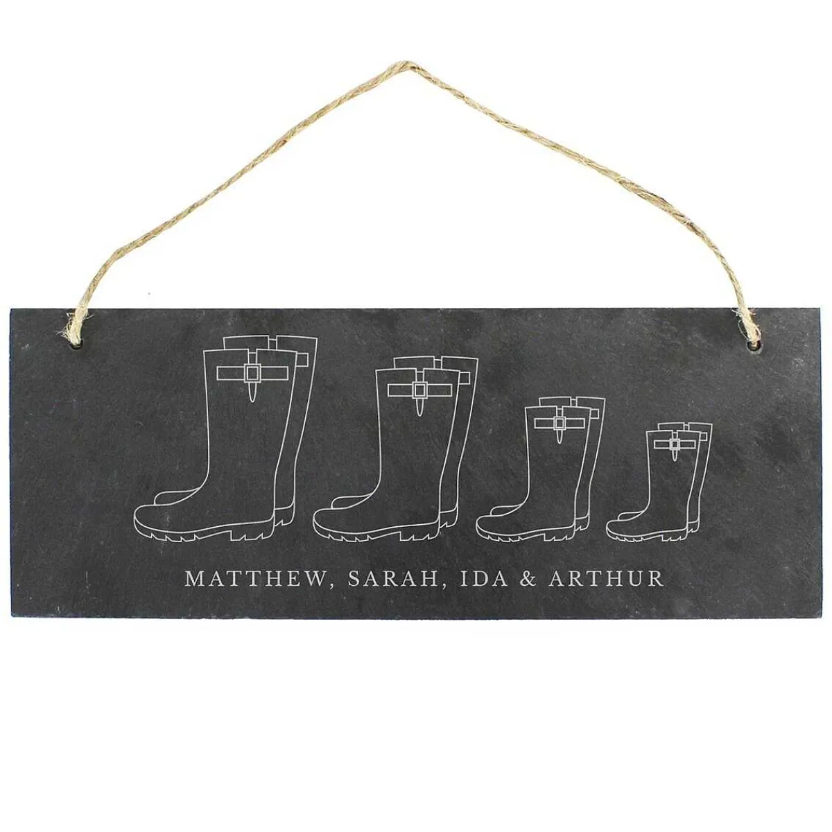 Personalised Welly Boot ‘Family Of Four’ Hanging Slate Plaque