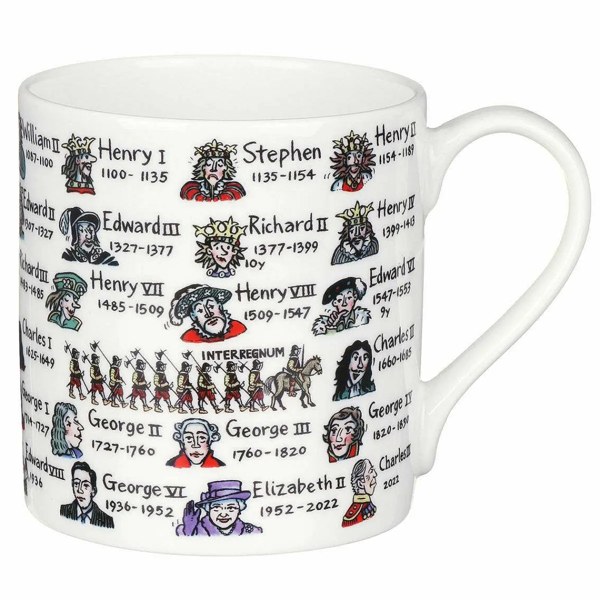 This Mug Is Designed With Colourful Illustrations And Dates Of All The Monarchs And The Years That They Reigned For. With A Capacity Of 350Ml This Mug Is Plenty Big Enough For All Your Favourite Hot Beverages.
