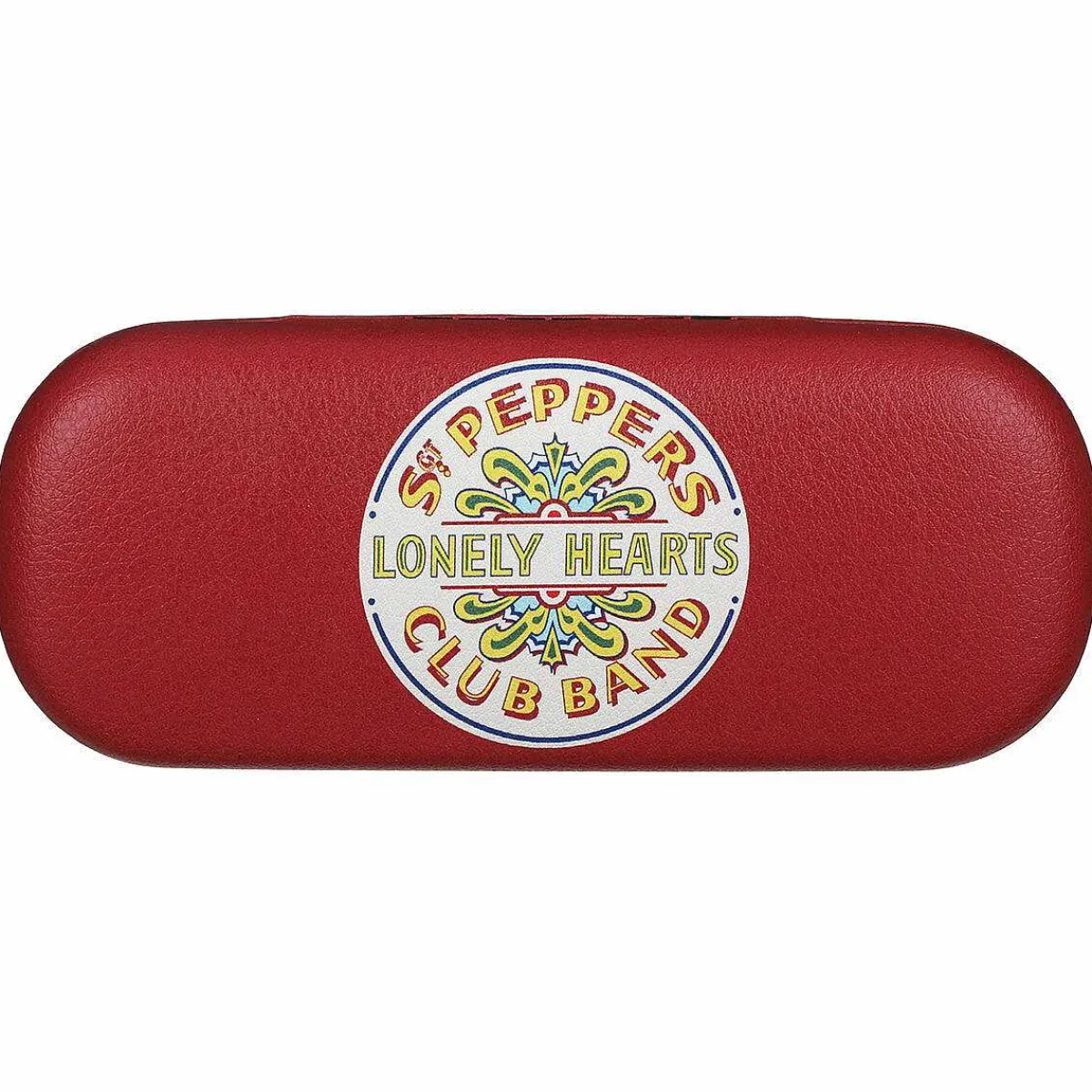 This Red Case Features The Sergeant Pepper Lonely Hearts Club Band Badge. This Hard Case Is Complete With A Hinge Opening And Features Soft Lining And A Matching Glasses Cloth.