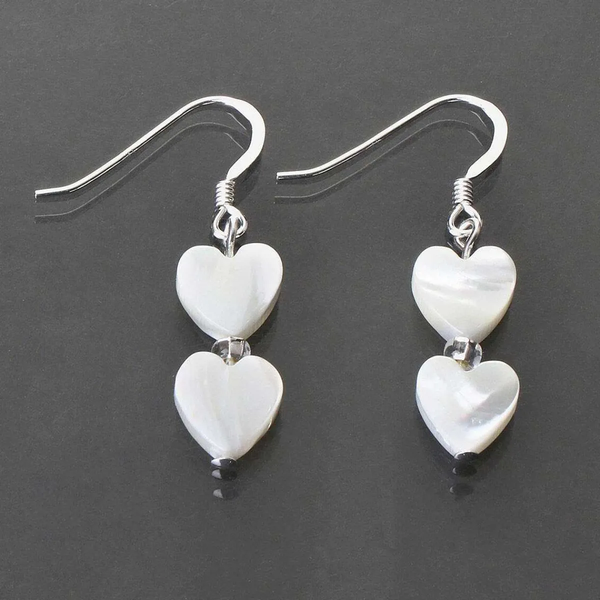 Two Heart Shell Beads With A Pearlescent Finish Are Interspersed With A Clear Spacer Bead Which Combine To Form These Elegant Drop Earrings. Combine This Pair Of Earrings With The Matching Bracelet And Necklace To Complete A Sophisticated Look.
