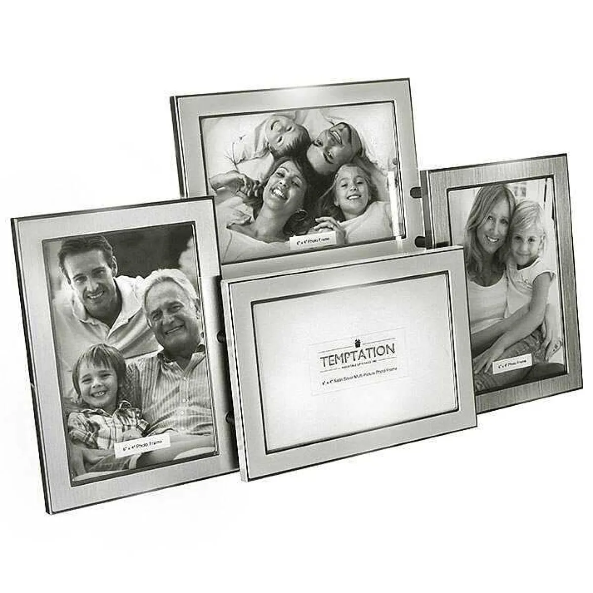 Compromised Of Four Individually Sized Frames, Each Can Hold A Collage Of Memories Of Family, Friends And Loved Ones. All Four Frames Display Images 6 X 4 Inches In Size With Two Featuring In A Landscape Format And Two In A Portrait Manner. Each Frame Is Constructed From Metal With A Subtle Brushed Effect Finish.