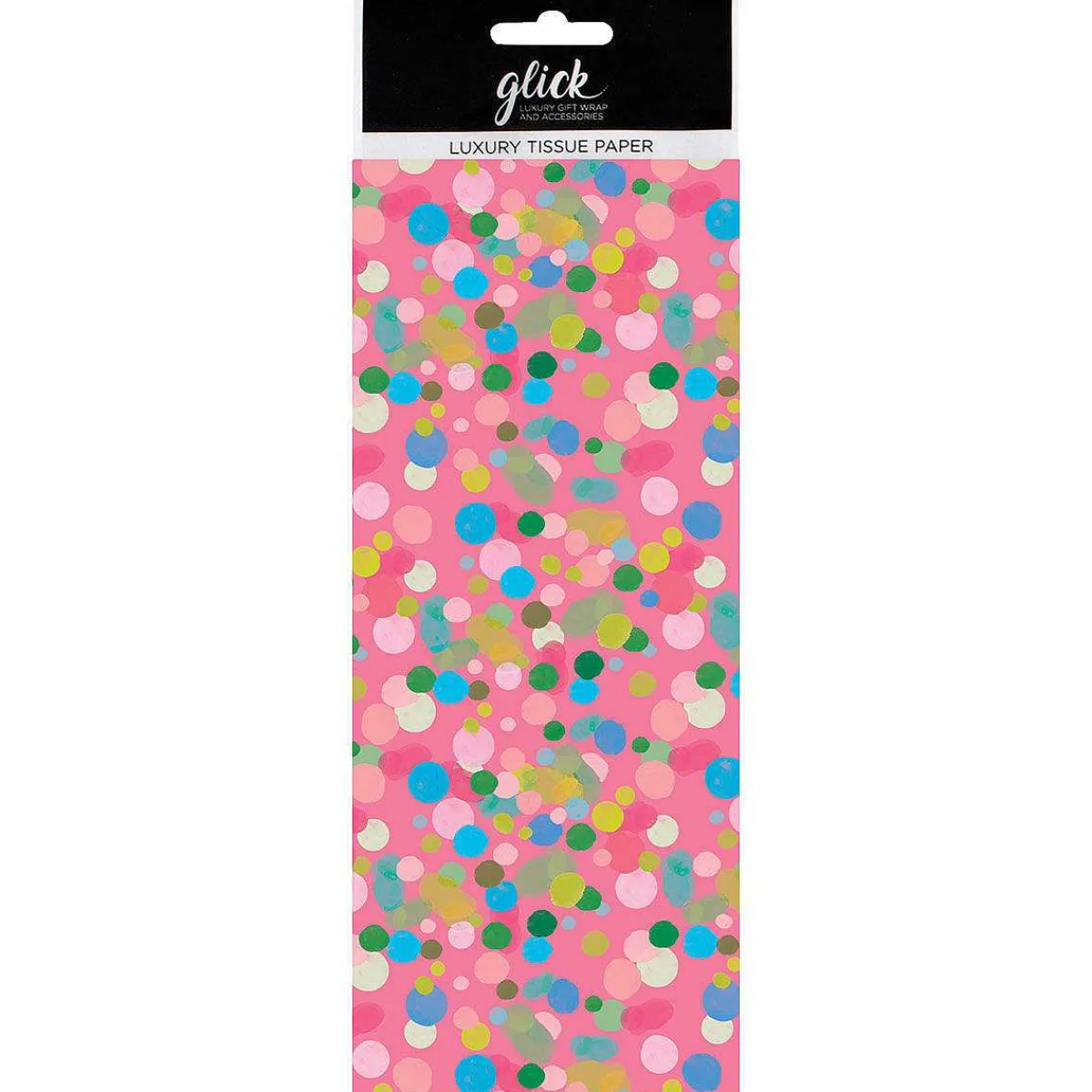 Wrap A Gift In Beautiful Tissue With This Stunning And Colourful Fuchsia Fizz Tissue Paper From The Stephanie Dyment Range By Glick. This Gorgeous Tissue Paper Is Decorated With A Pattern Of Splattered Dots In Colours Of Blue, Green And Yellow, Scattered Across A Fuchsia Pink Background.