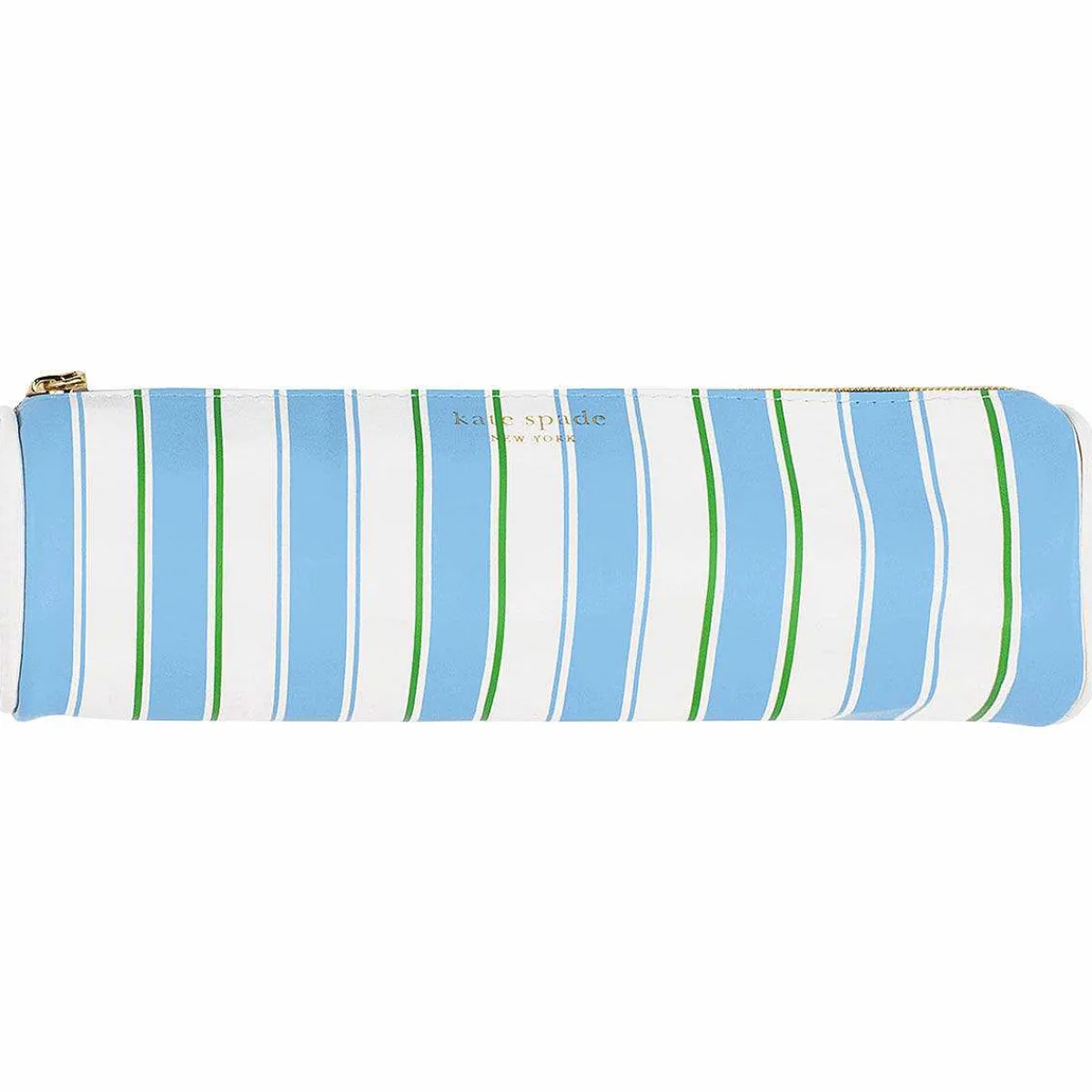 The Pencil Case Features A Dainty Blue, Green And White Stripe Pattern And Is Embellished With Gold Detailing. The Gold Zipper Means Things Will Never Get Lost, Perfect For Popping In Your Handbag Or Keeping On Your Desk.