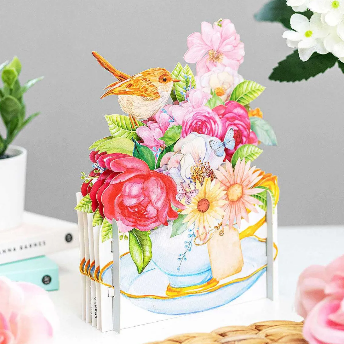 Alljoy Designs Teacup Flower And Bird Greetings 3D Pop Up Card