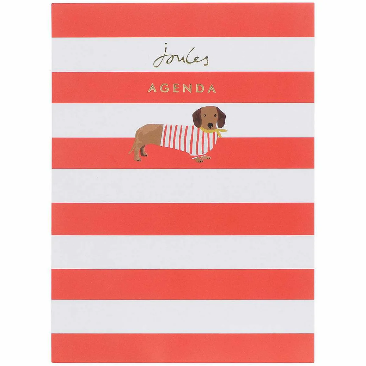 The Front Of This Planner Is Decorated With Broad Red And White Stripes, Complete With An Illustration Of A Dachshund Dressed In A Matching Striped T-Shirt With Yellow Neck Scarf. Above The Dog In Gold Foiling Is The Joules Logo And Text That Reads ‘Agenda’. This Diary Is Undated Which Means You Can Start It Whenever You Want, And It Doesn’T Matter If You Miss A Week Or Two. With A Gorgeous Blue Ribbon To Mark You Page, This Agenda Includes Spaces For Special Dates, Year-To-View Pages, Month-To-View Pages, Week-To-View Pages And Lined Notes Pages.
