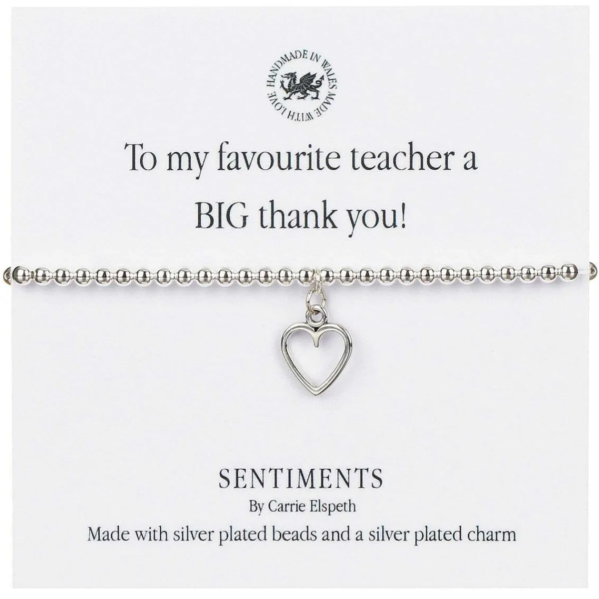 A ‘Sentiment’ Card Is Included With The Bracelet, With The Message; ‘To My Favourite Teacher A Big Thank You!’.