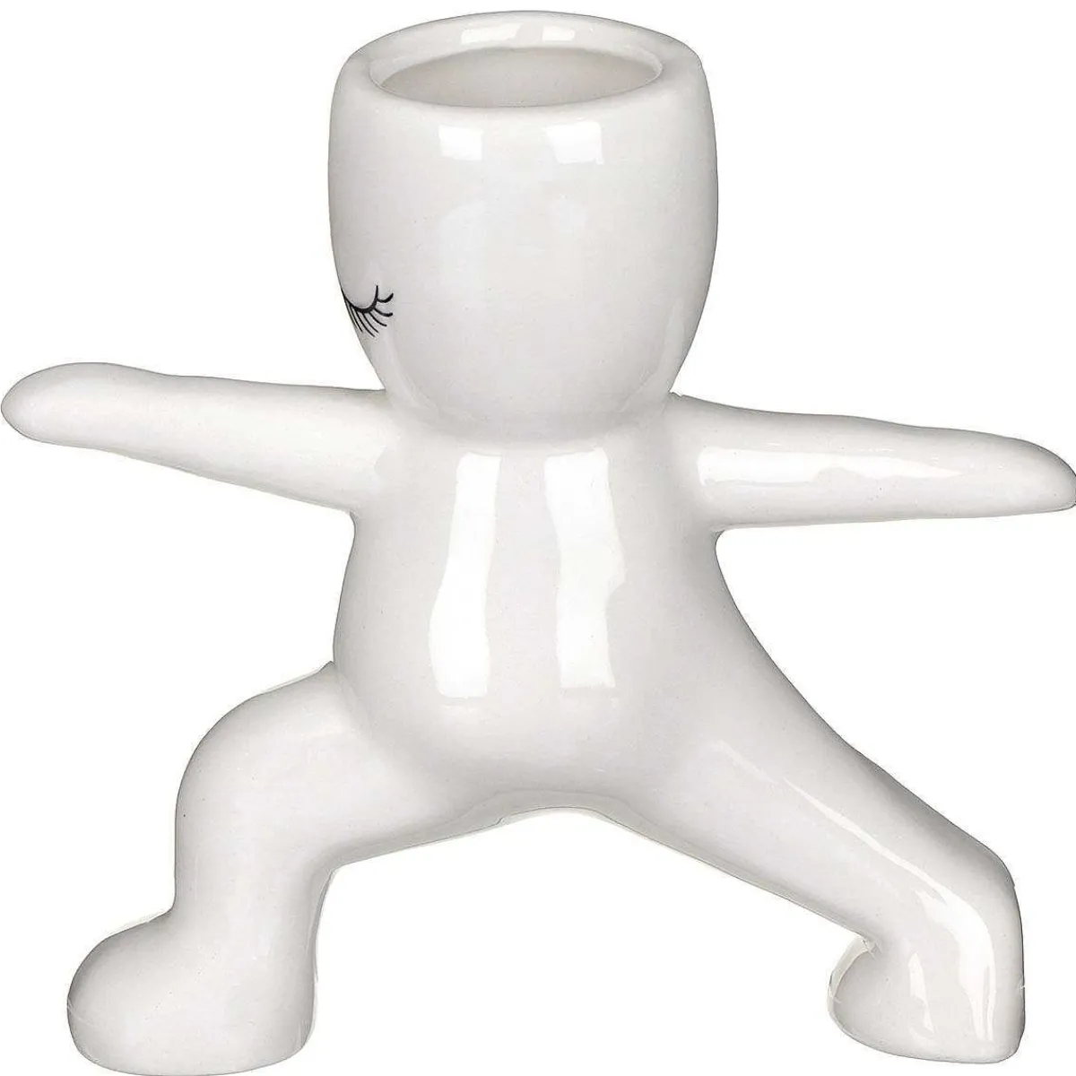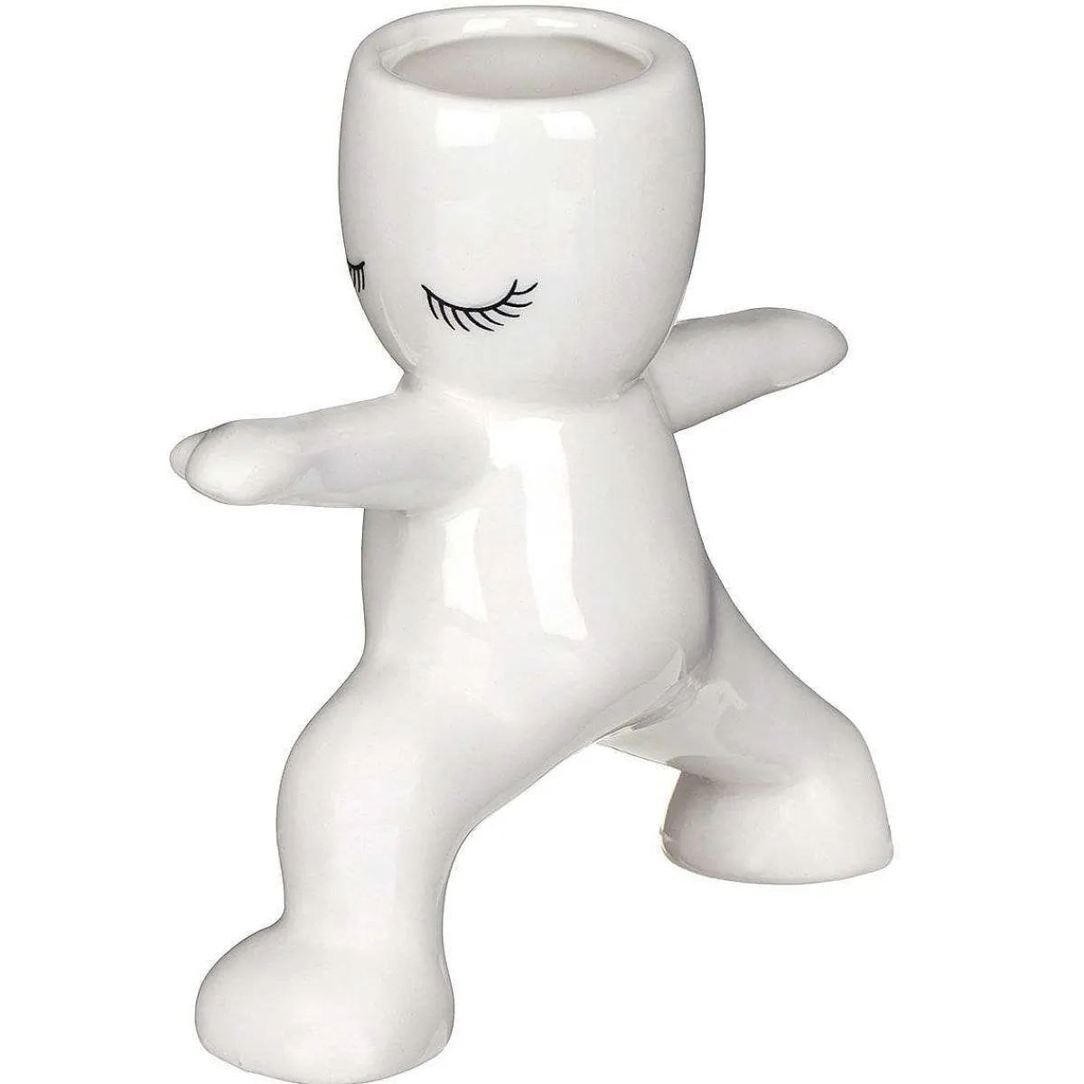 This Glossy Ceramic Planted Features A Person Practicing Yoga With Long Eyelashes Painted In Black. There Is A Small Opening In The Top For A Small Number Of Plants Which Is Sure To Add A Pop Of Colour To Your Kitchen.