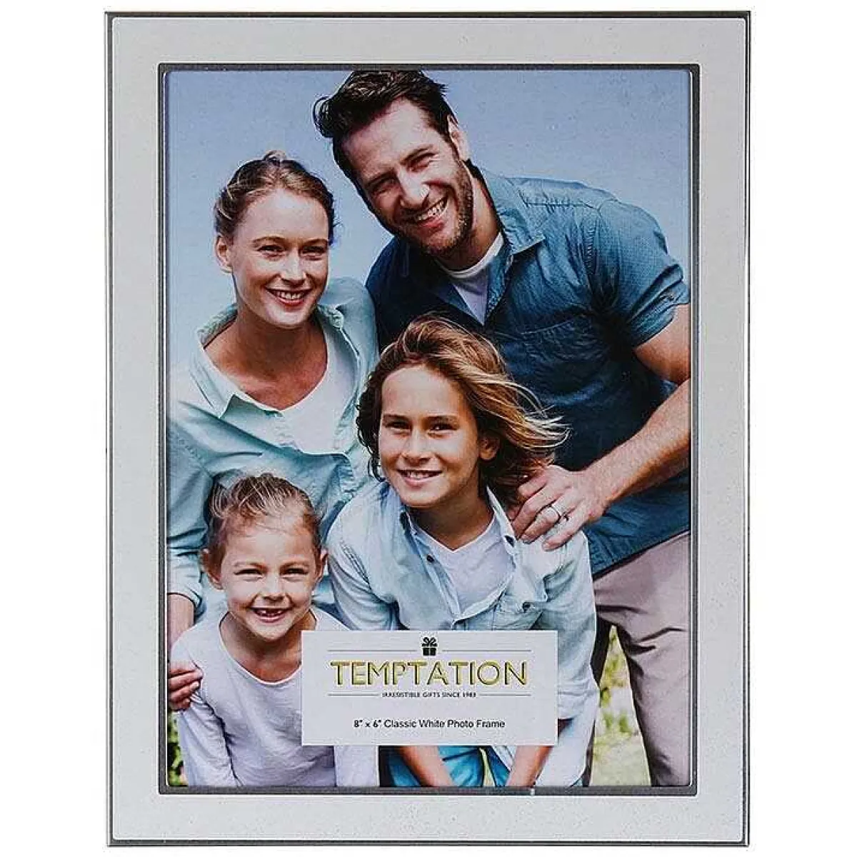 A Sleek And Elegant Way To Perfectly Display A Cherished Photograph, This White Frame With Silver Edging Stylish Makes A Statement In Any Home. The Frame Is Constructed From Metal With A Subtle Glossy White Finish.