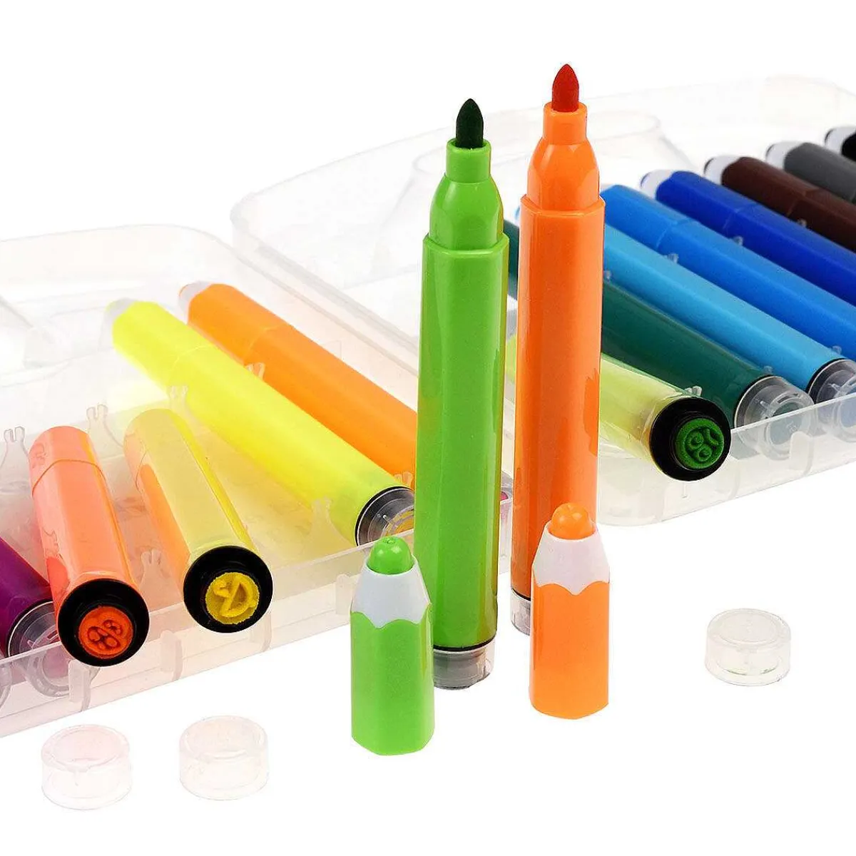 Each Felt Tip Pen Is Designed To Look Like A Colouring Pencil, Pull Off The Top To Use The Felt Tip Nip For Colouring In Or Remove The Little Plastic Cap On The Bottom To Use The Fun Stamp To Softy Print Little Images.