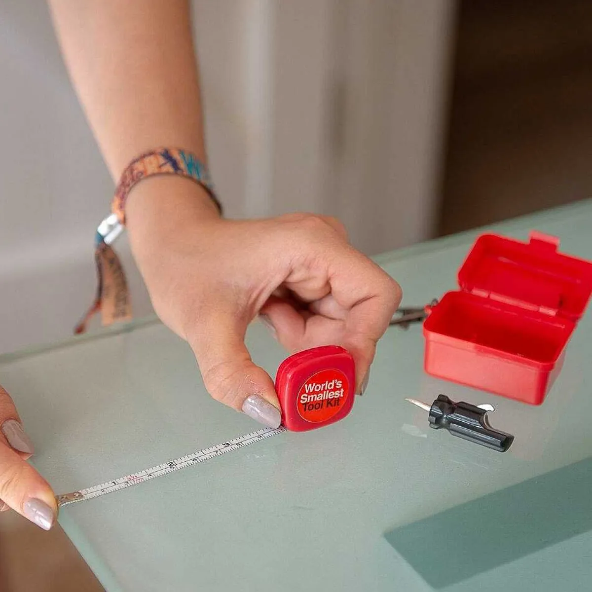 Welcome To The World’S Smallest Tool Kit, Perfect For A Spot Of Diy, No Matter How Small! Tiny Enough To Fit In Your Pocket, The Tool Box Includes Two Screwdrivers (One Flathead And One Phillips) And Your Very Own Retractable Tape Measure.