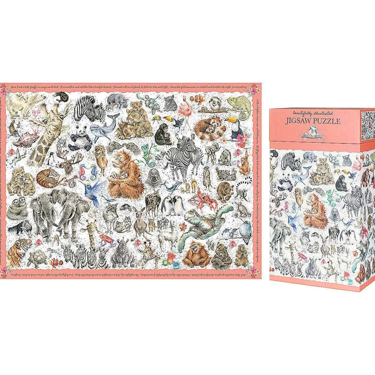 Piece The Puzzle Together To Reveal A Coral Pink Border Which Has A Verse Inspired By The Natural World Printed Around The Edge Of The Puzzle. Each Puzzle Piece Is Made From Sustainably Sourced, Extra Thick Card And Has A Premium Textured Finish. With Some Of Wrendale Most Recognisable Illustrations, This Puzzle Includes Many Beautiful Illustrations Inspired By The Exotic Animals Of The World, Including Orangutans, Elephants, Zebra, Lions And More.