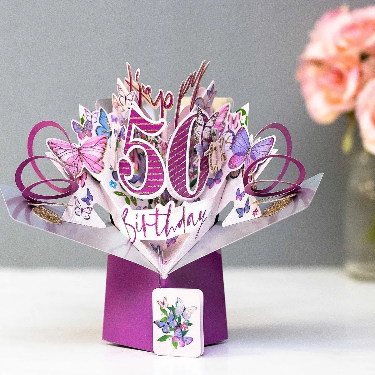 ‘50Th Birthday’ Butterflies 3D Pop Up Card