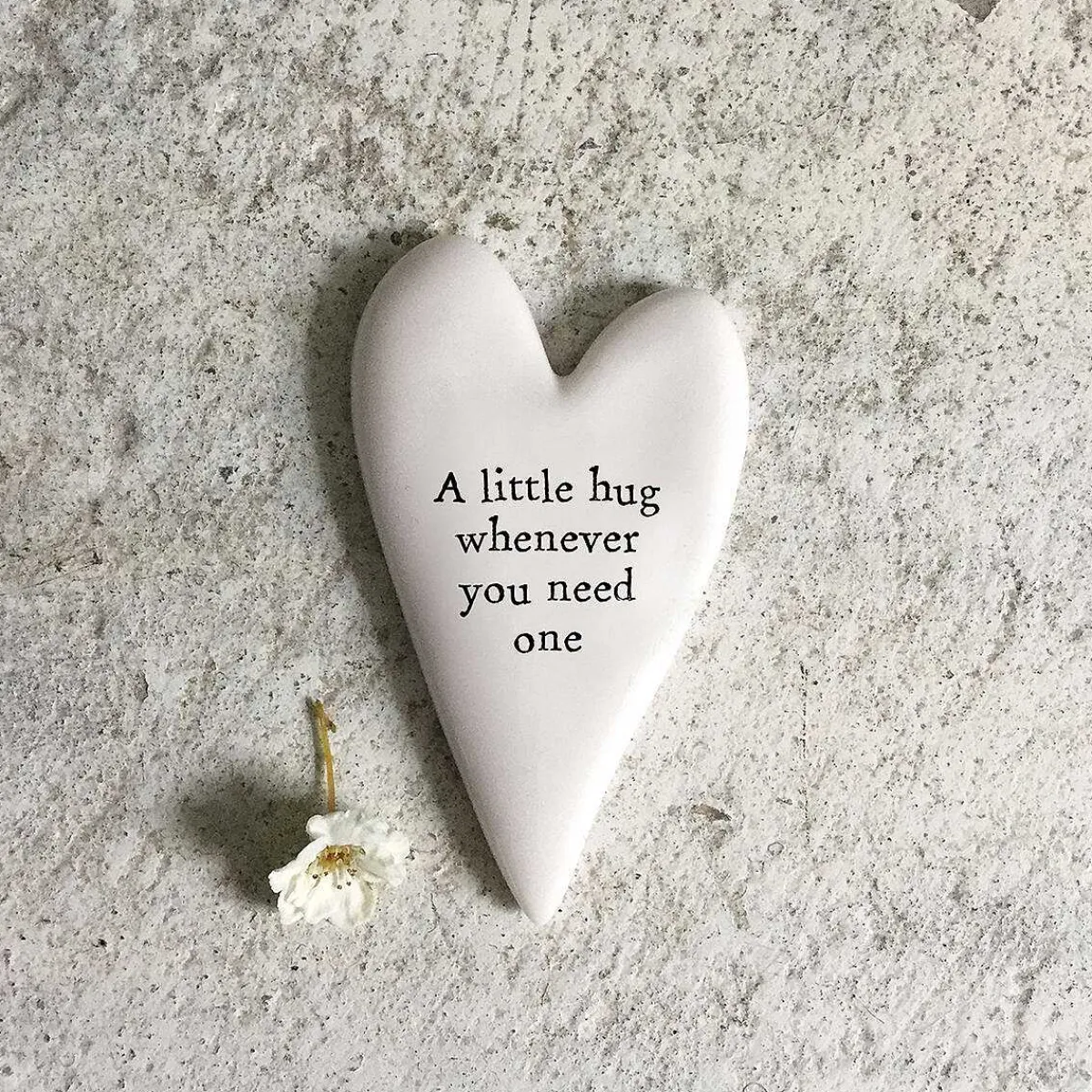 Fashioned Into A Tactile Heart Shaped Pebble, This Small Token Of Love Reads The Words ‘A Little Hug Whenever You Need One’ In The Traditional East Of India Font Pressed Into The Stone. This Sentimental Shiny White Pebble Will Give A Feeling Warmth And Reassurance To Your Cherished Loved One When They Hold This In Their Hand.