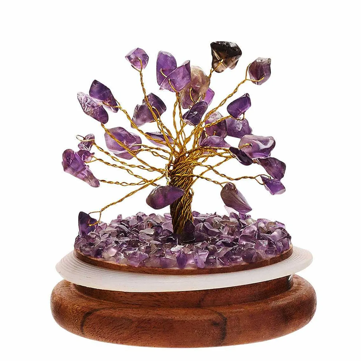 Made From Amethyst Crystals, This Tree-Shaped Ornament Is The Perfect Good Luck Charm. The Tree Is Presented Beautifully Within A Glass Dome Which Will Look Beautiful Displayed In Your Home And Creates A Tranquil Atmosphere In Your Living Space.
