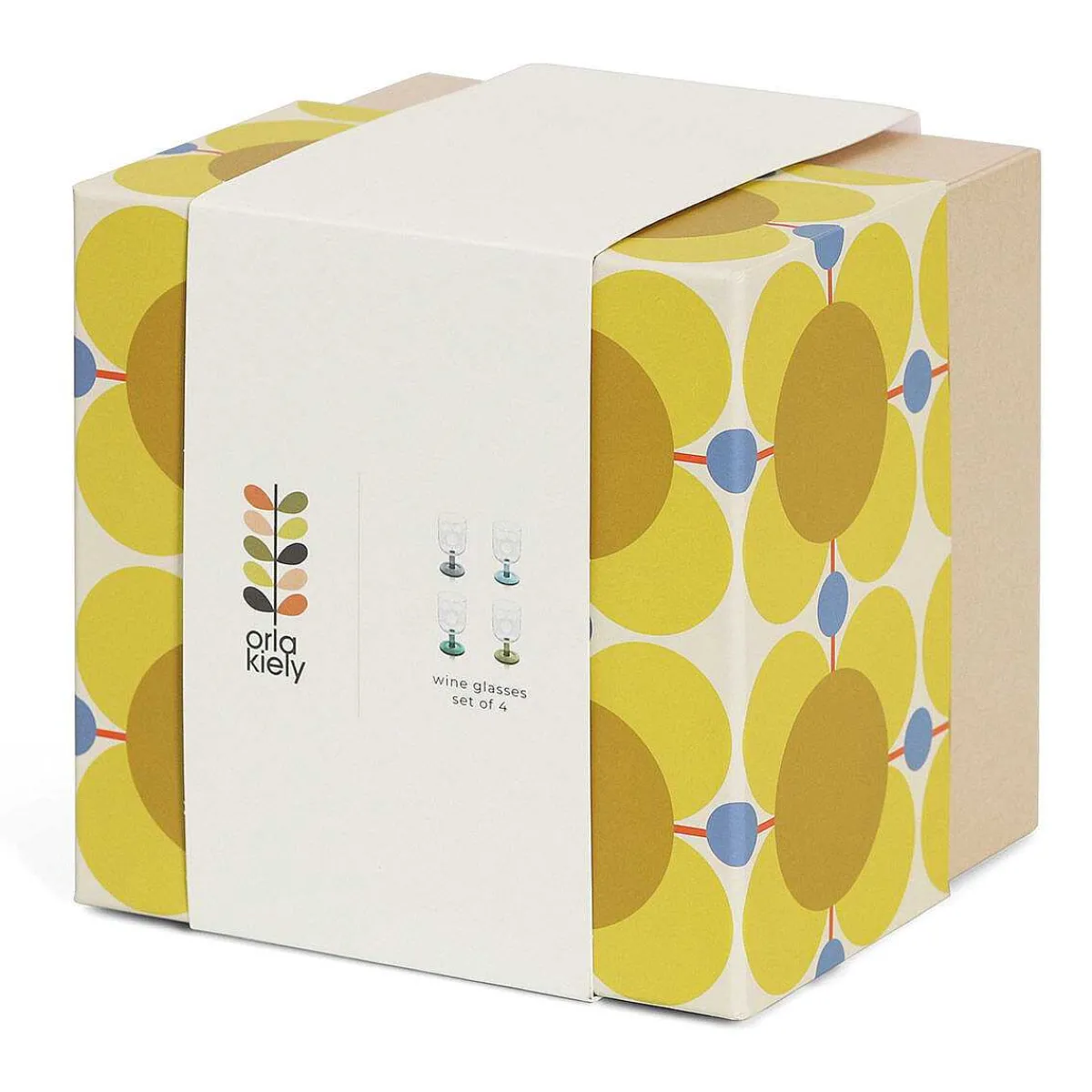 This Fabulous Set Of 4 Wine Glasses Features The ‘Atomic Flower’ Design From Orla Kiely. A Beautiful Way To Add A Retro Touch To Your Kitchen.