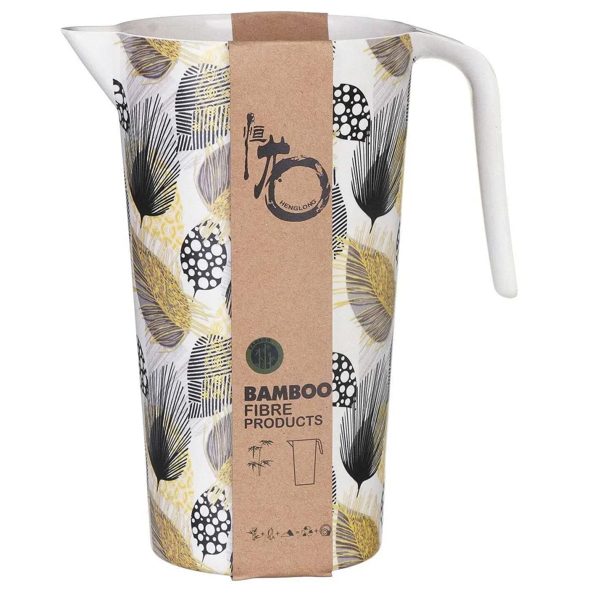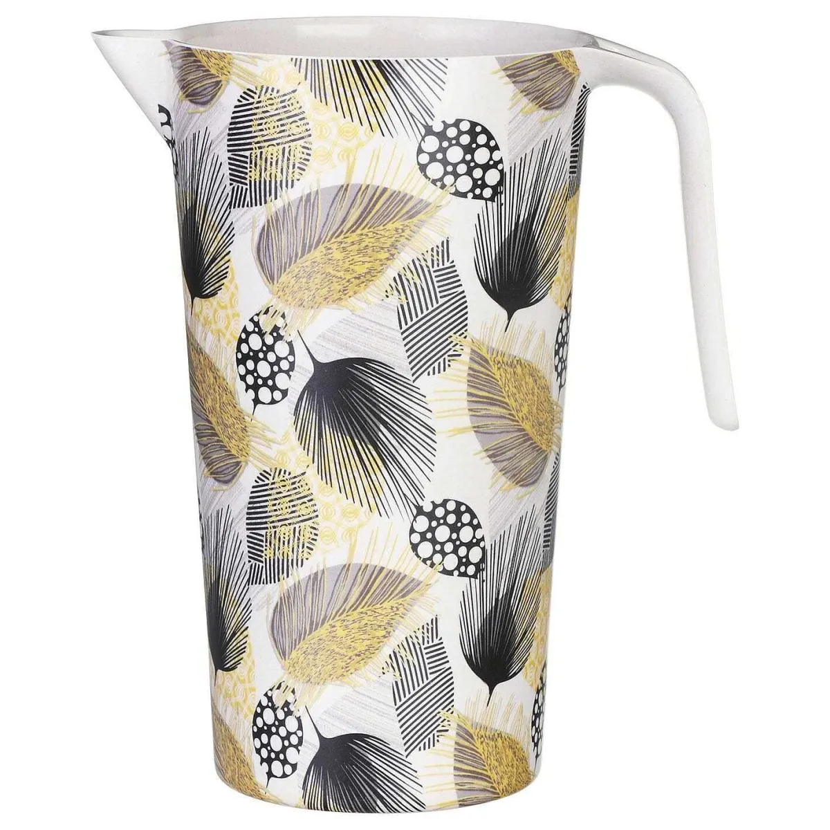 This Recyclable Bamboo Jug Features A Pattern Of Leaves Illustrated In Various Styles. The Design Boasts A Variety Of Colours Including Yellow, Cream, Black And Brown. The Jug Is Made Up Of 65% Bamboo Fibre, 20% Melamine And 15% Corn Paste With A 1.5-Litre Capacity And Is Dishwasher Safe.